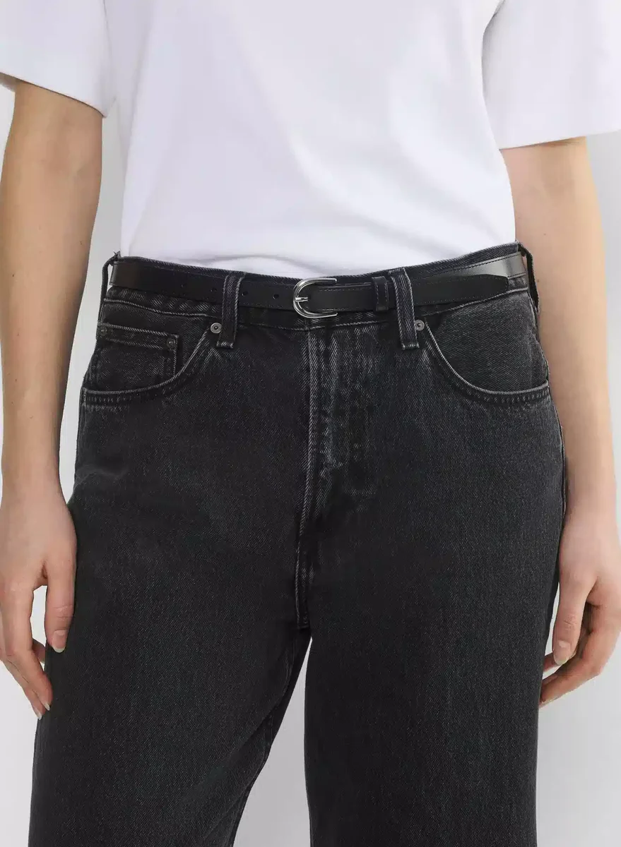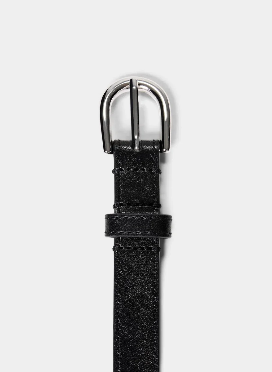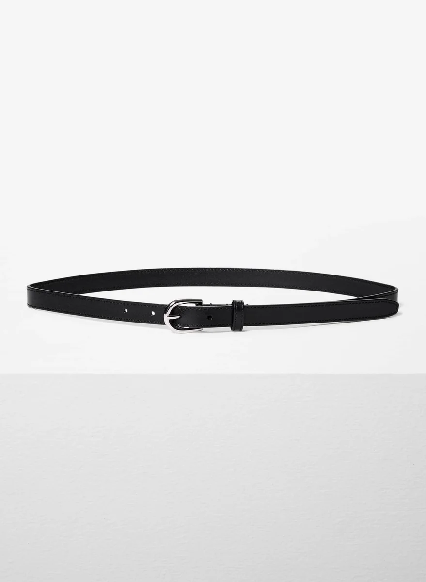 Buckle up This is a slim version of our classic western-inspired belt with a solid brass buckle, hand-painted edges and a flat surface for a sleek look. It’s cut from Smooth Leather — 100% leather with a clean, smooth finish.