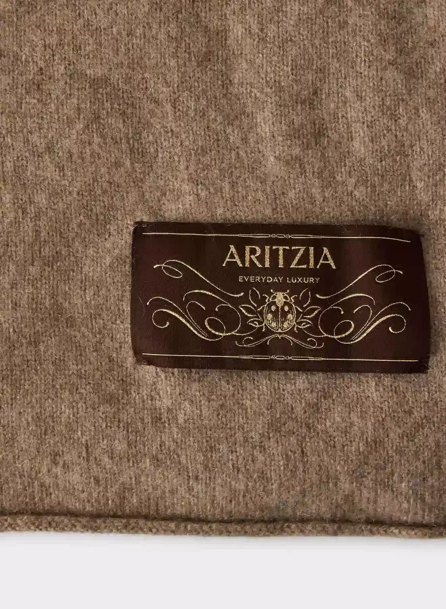 This is a blanket scarf with a narrow silhouette and a rolled hem. It’s jersey-knit with Aritzia’s Cashmere — 100% cashmere yarn coveted for its signature softness and warmth. The finest available. This cashmere is verified to The Good Cashmere Standard®.