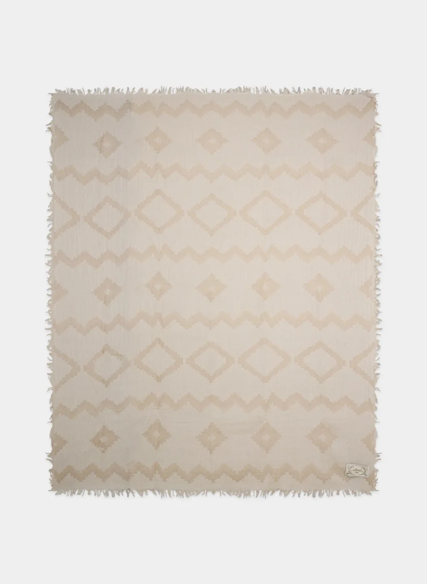 A signature Wilfred style, this is a reversible blanket scarf with hand-finished fringed edges and original jacquard basket-weave inspired artwork. It’s made from felted Australian 100% merino wool with a soft feel and plush texture.