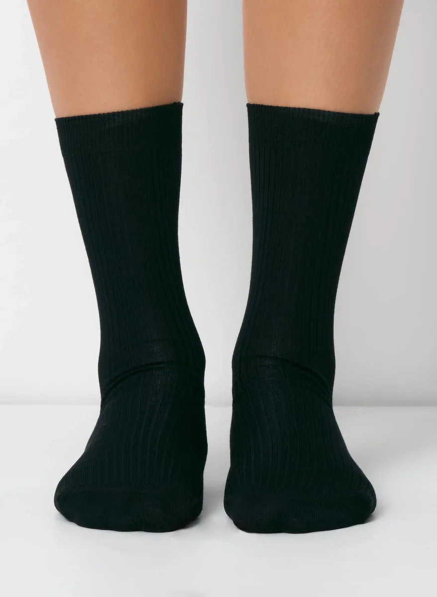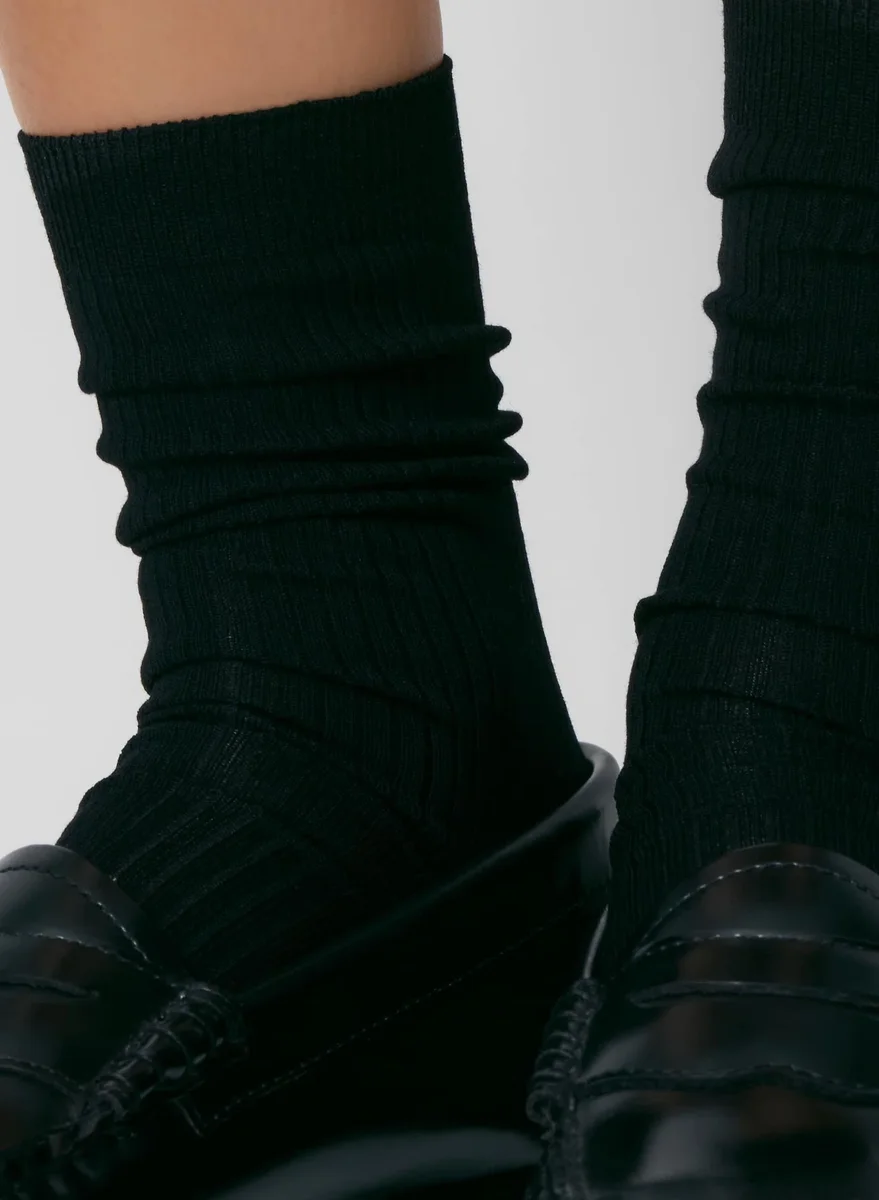 These are ribbed crew socks with a seamless toe and shaped heel for a just-right fit. They’re made with fine-knit mercerized cotton yarn with a refined, luxurious feel and the perfect amount of stretch to hug your foot.