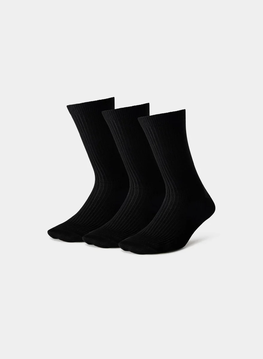 Ribbed mercerized cotton crew socks, 3-pack