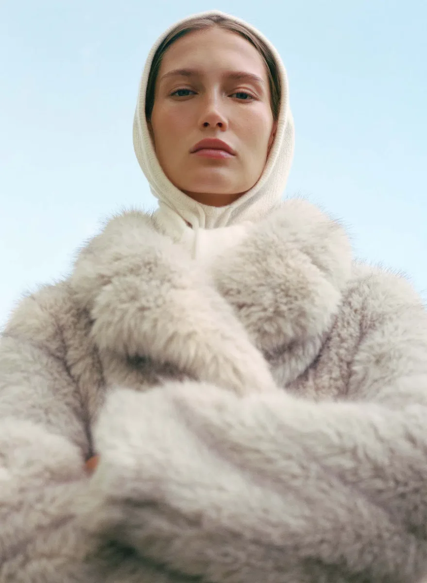 This is a hood with a rolled hem and drawstring for a customizable fit. It’s knit with Aritzia’s Cashmere — 100% cashmere yarn coveted for its signature softness and warmth. The finest available. This cashmere is verified to The Good Cashmere Standard®. It’s constructed with a Jersey stitch for a soft drape and a smooth, flat feel.