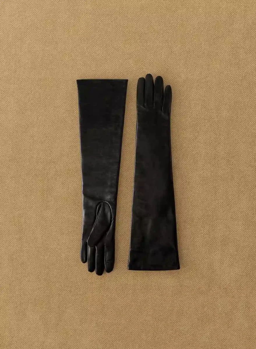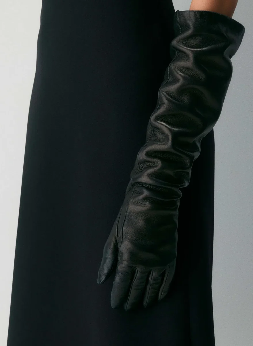 Long tech-friendly nappa leather gloves with cashmere lining