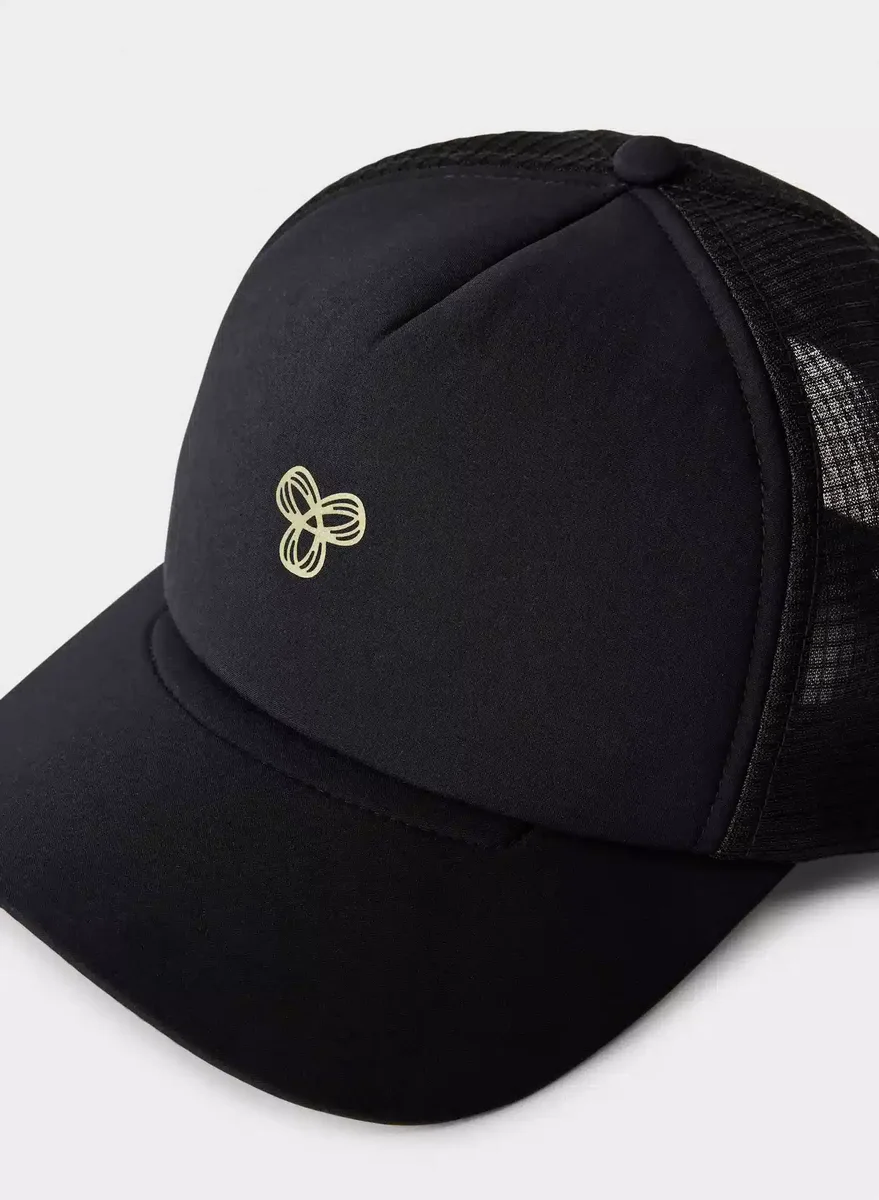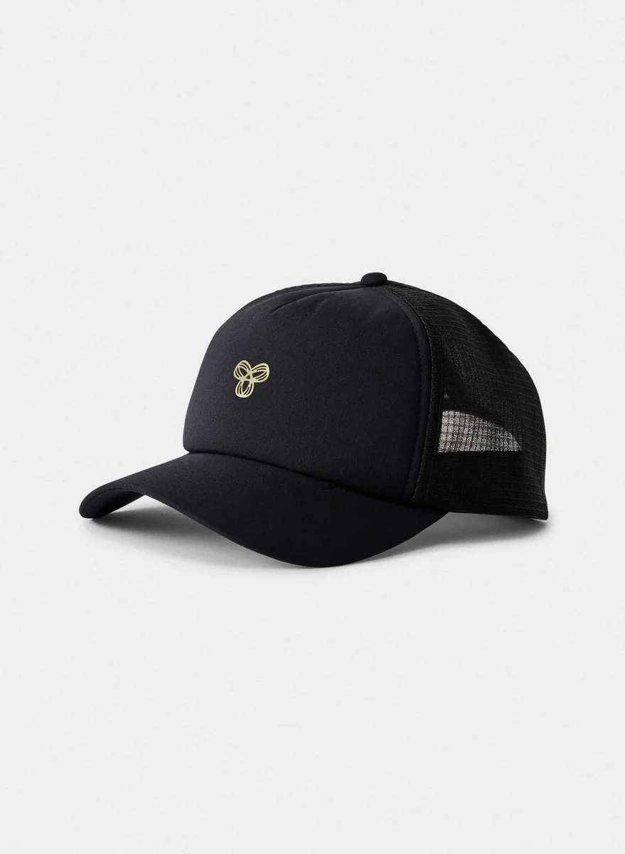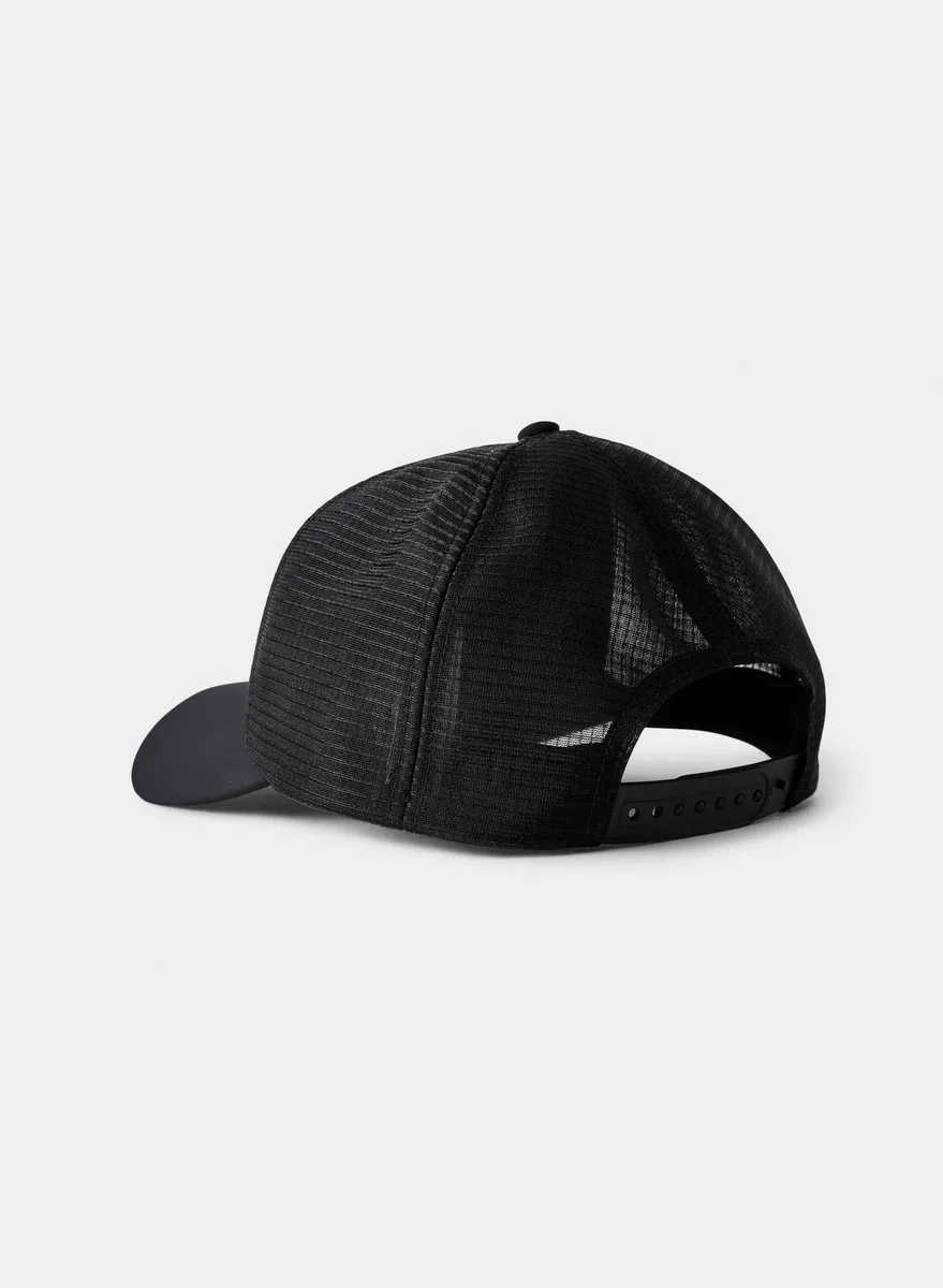 This is a trucker hat with an adjustable snap back for a customizable fit. The back features fine mesh panelling for a breezy feel.