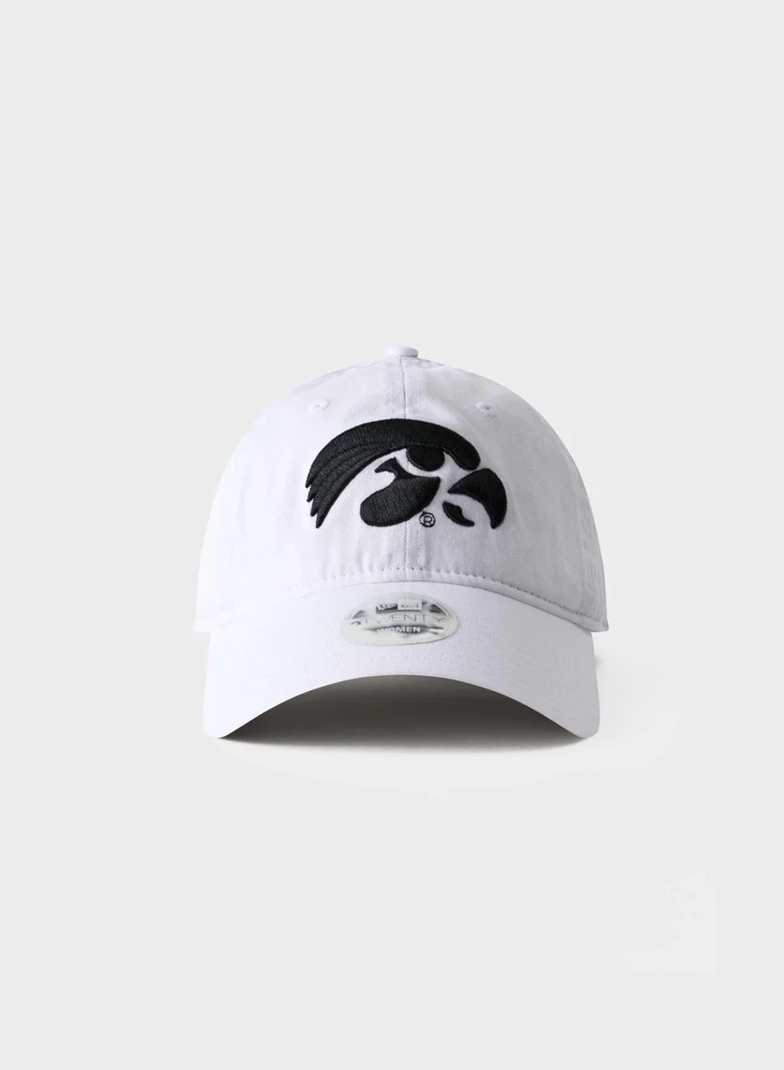 This is a New Era 9TWENTY hat. It features raised Iowa Hawkeyes embroidery and an adjustable strap for a customizable fit. It’s made with 100% cotton twill and specially designed in a women’s fit for a more flattering look.