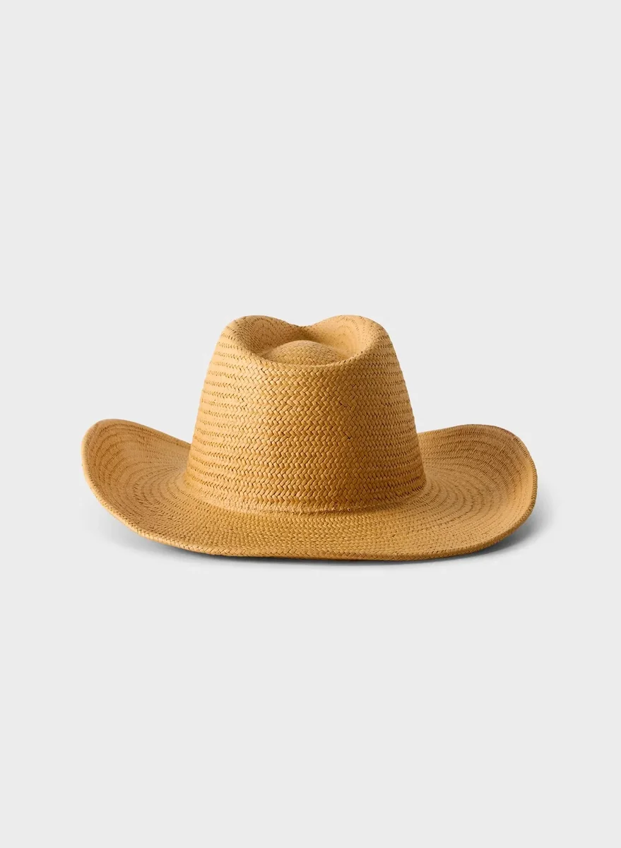 This is a western-style hat with a flexible brim and breathable construction for an airy feel. It’s crafted from lightweight 100% Toyo paper straw and made by hand so that no two are exactly alike.