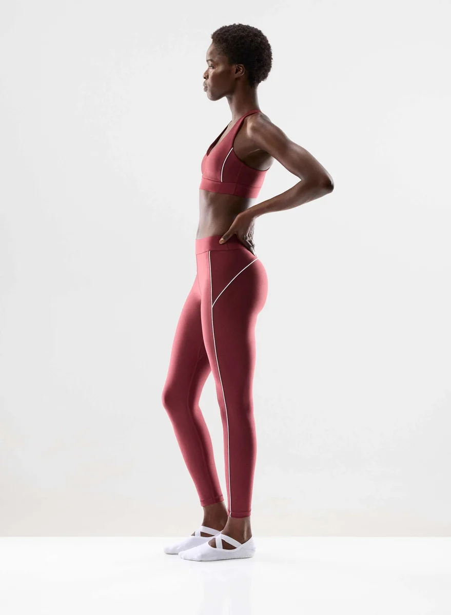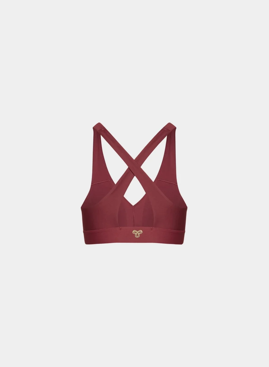 Designed to provide medium support, this is a cross-back sports bra with a V neckline and removable cups. It’s made with GloTone™ — sweat-wicking, sculpting fabric with a subtle sheen and sleek, body-hugging feel.