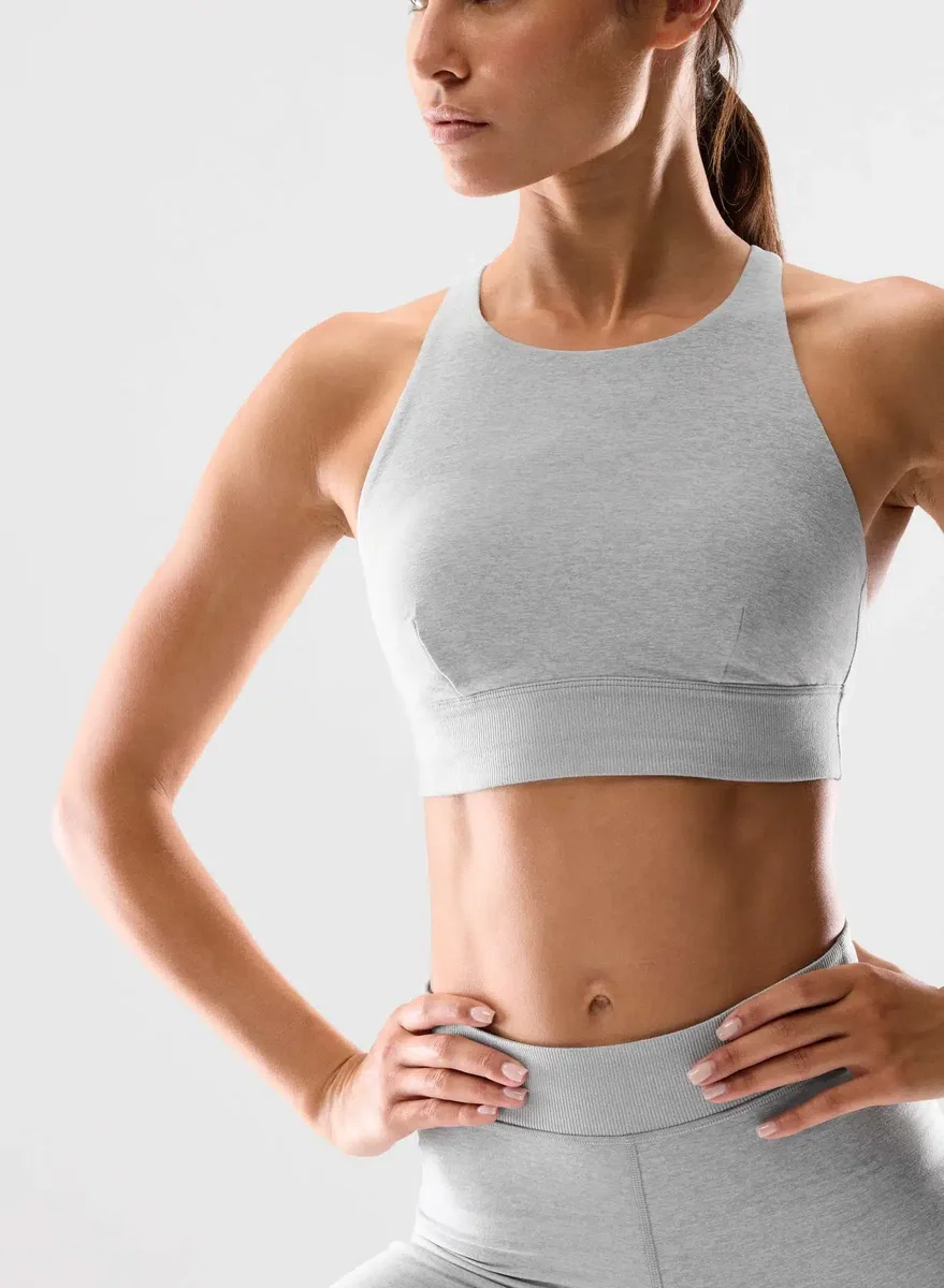 Designed to provide medium support, this is a high halter neck sports bra with removable cups and adjustable straps. It’s made with SoftWhip™ — supportive, sweat-wicking fabric with an ultra-soft, buttery texture and body-hugging hold. Decadent.