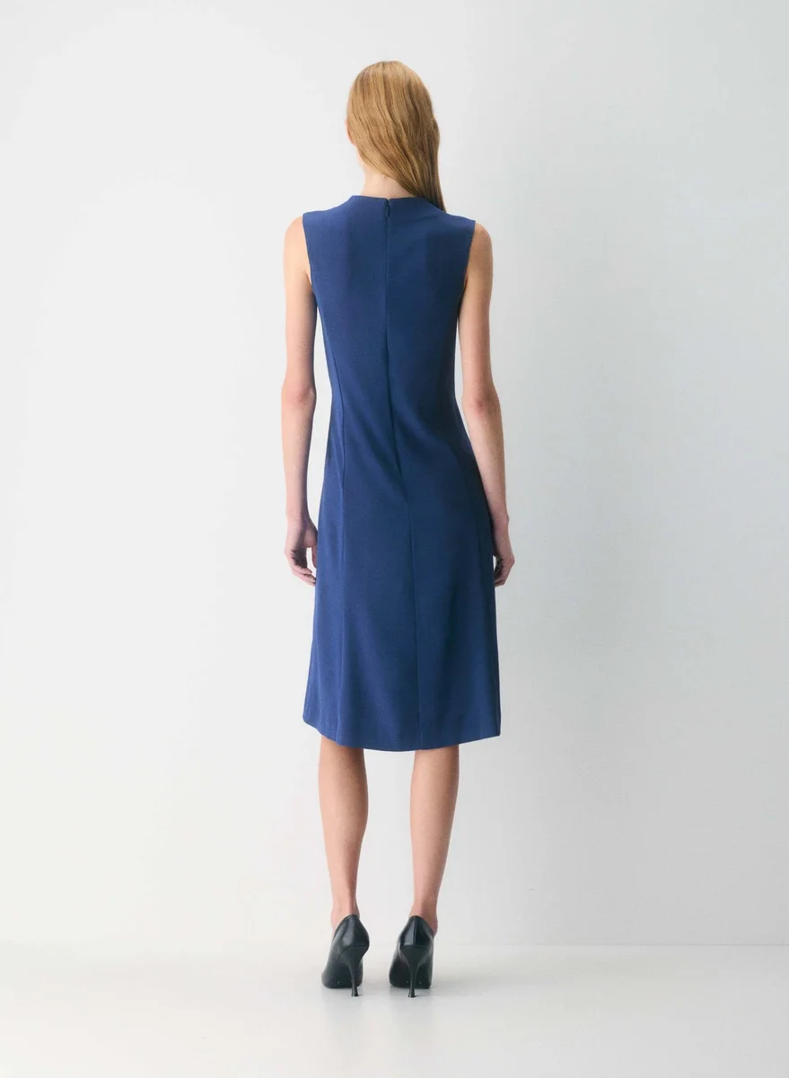 Sleeveless mockneck crepe midi dress