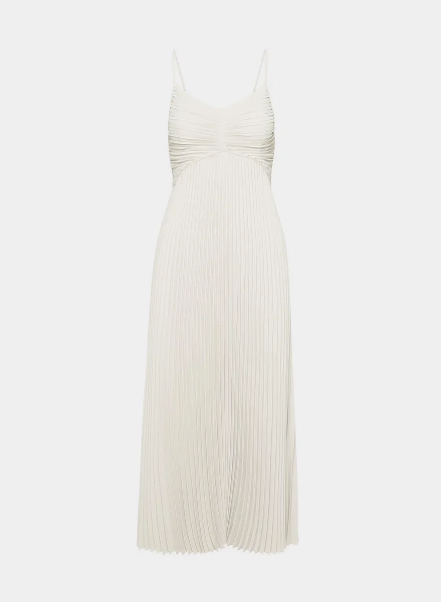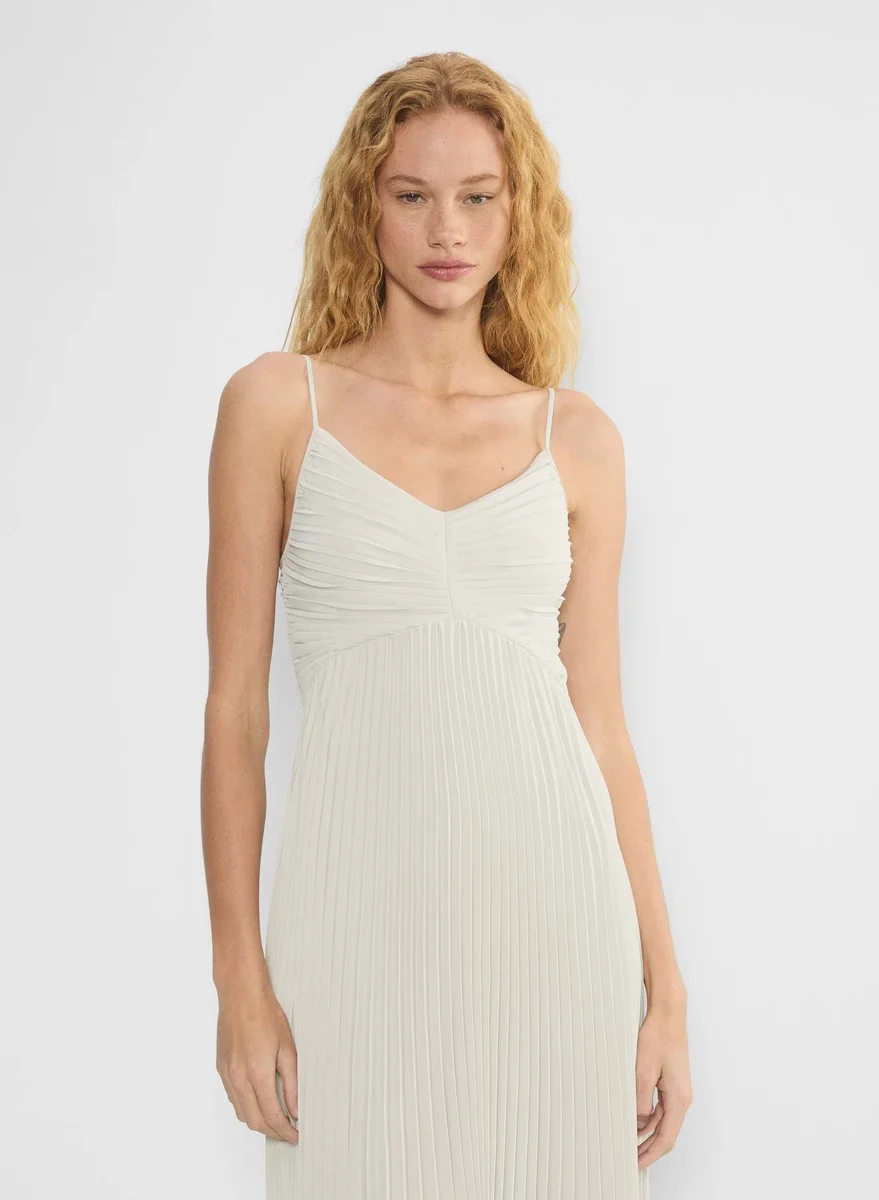 Matte satin pleated maxi dress