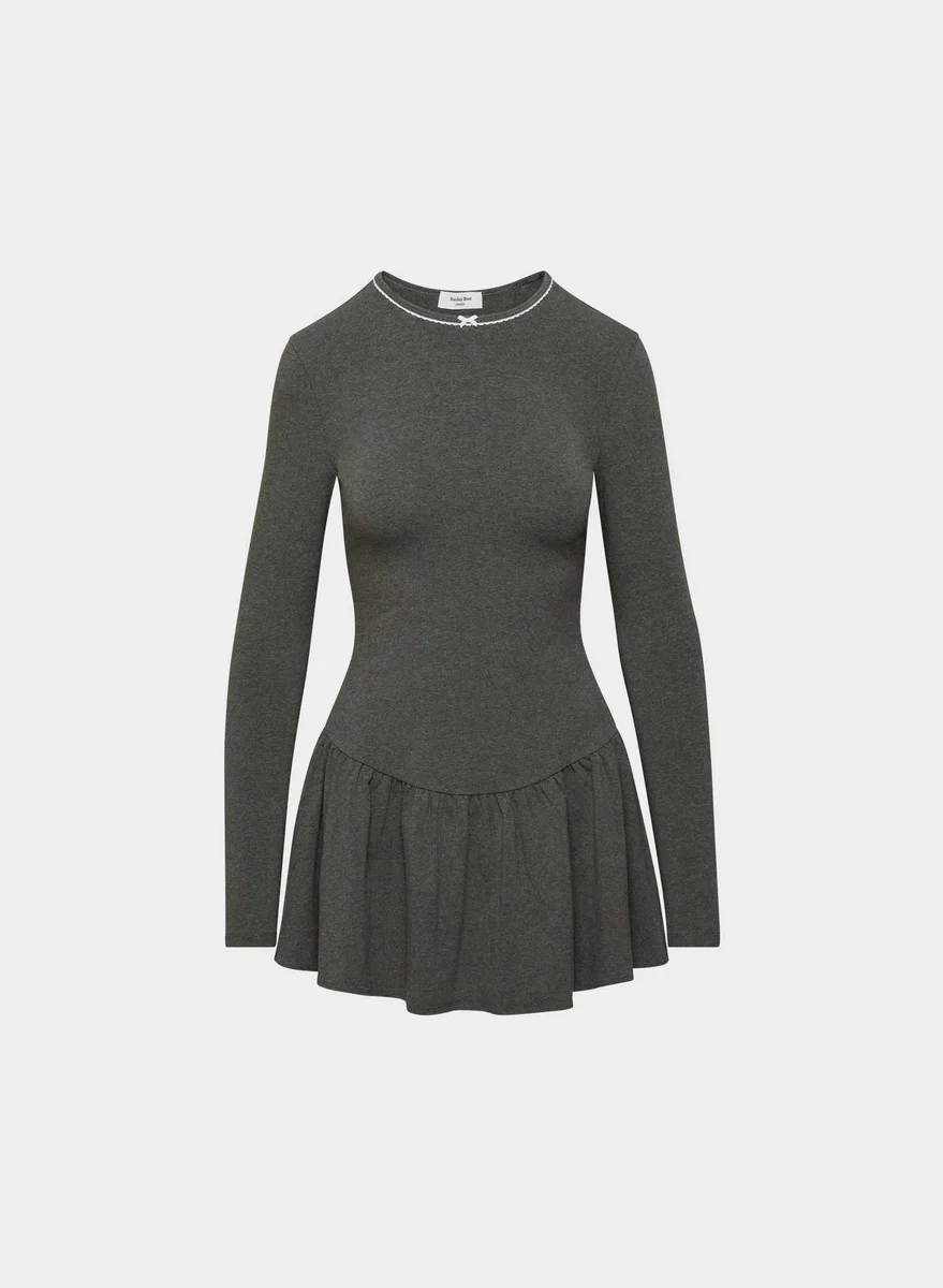 Do you pirouette?This is a longsleeve crewneck dress with a drop waist and a bow detail at the front. It’s made with Chill — a cotton-soft, wear-everyday jersey that feels great against your skin. It’s been recently updated for an even gutsier feel.