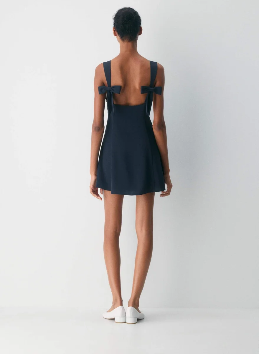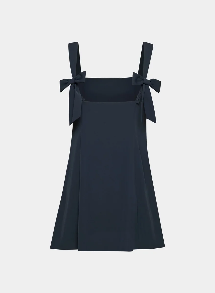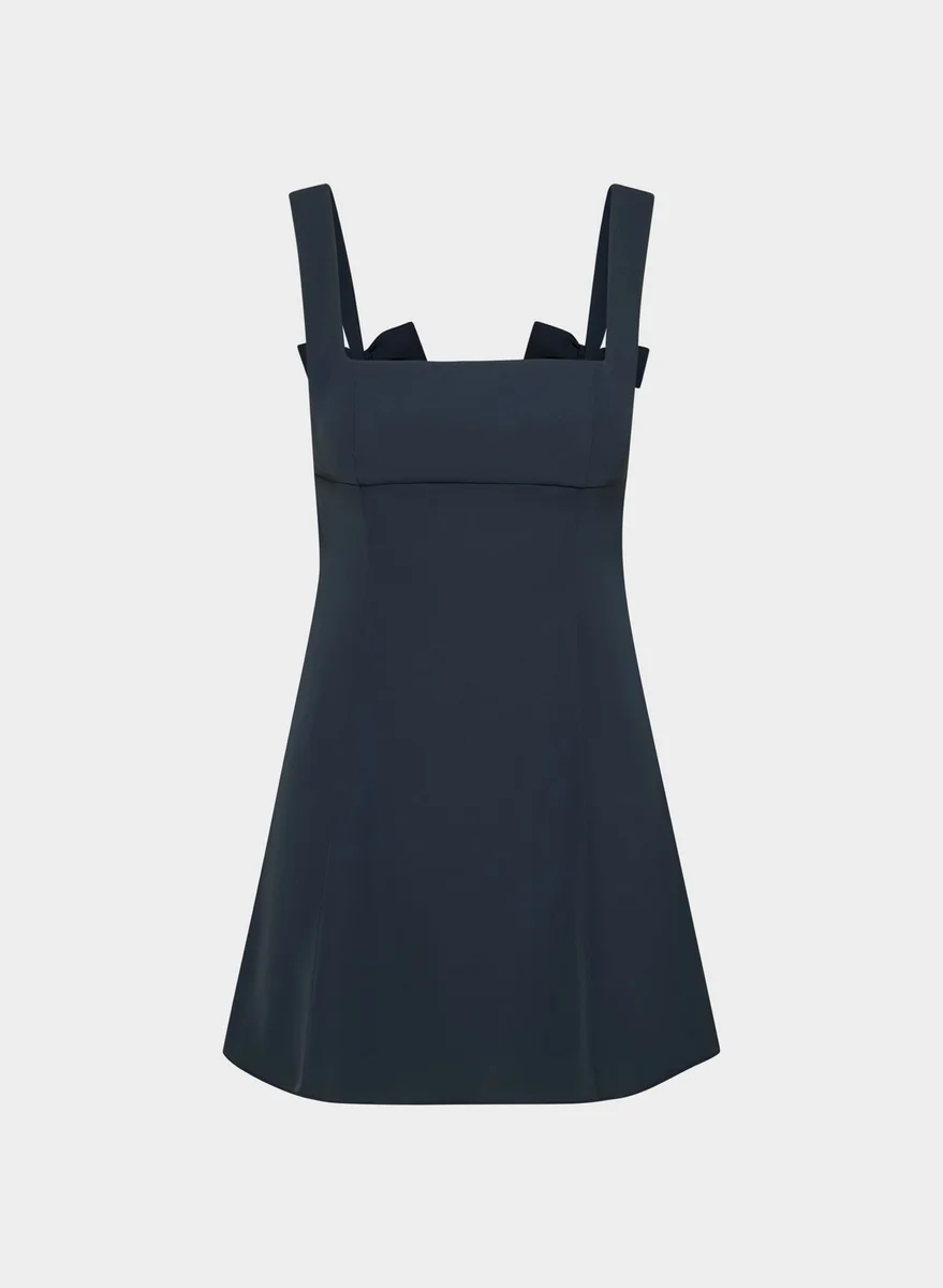 This is a sleeveless fit-and-flare dress with a square neckline and princess seams for shaping. It’s cut from drapey matte material with a luxuriously smooth next-to-skin feel. This fabric is made with 100% recycled polyester.