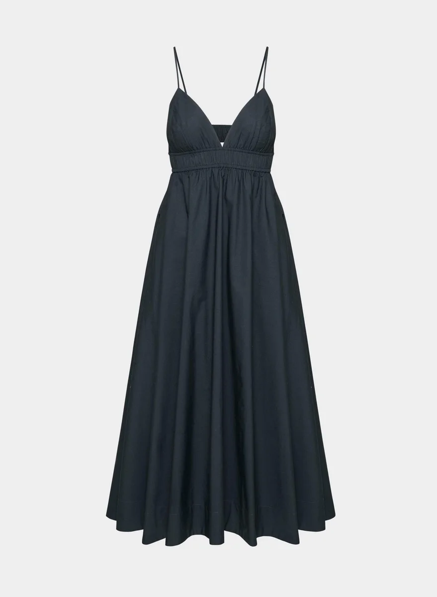 Encouraging you to spin in a fieldThis is a fit-and-flare maxi dress with an empire waist, adjustable straps and back cutout detail. It’s made from breathable cotton poplin with a crisp, airy feel that’s smooth to the touch.