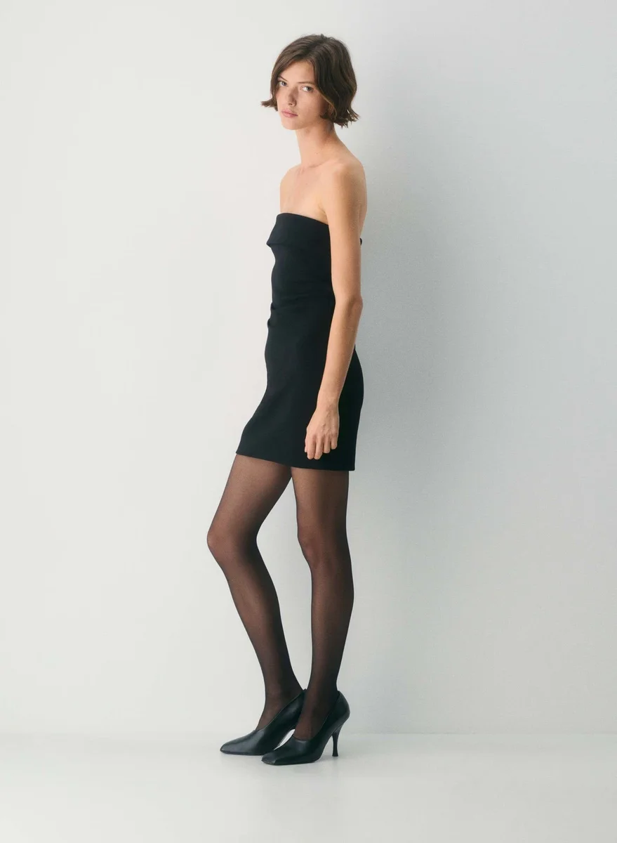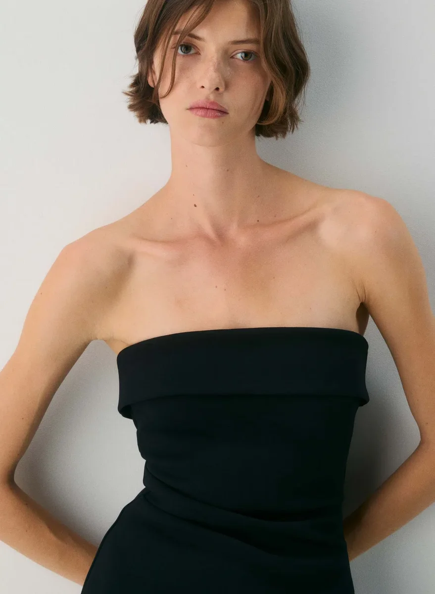 Good thing you’re used to attentionThis is a strapless micro dress designed for a slim fit. It’s cut from FigureKnit™ — structured, double-layer crepe fabric