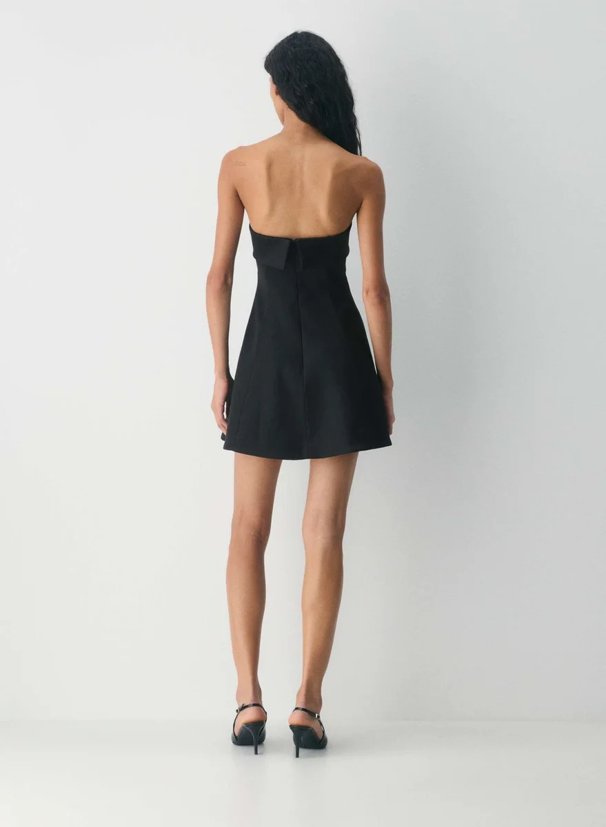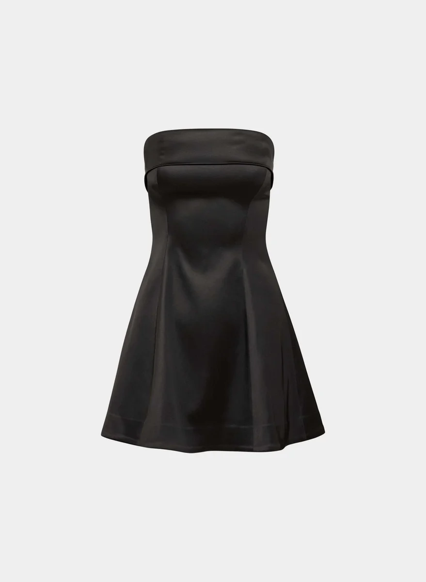 Strapless satin fit-and-flare mini dress