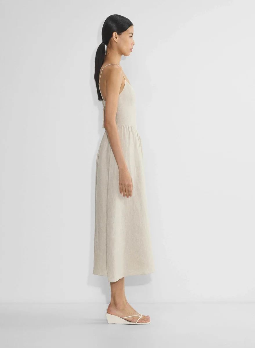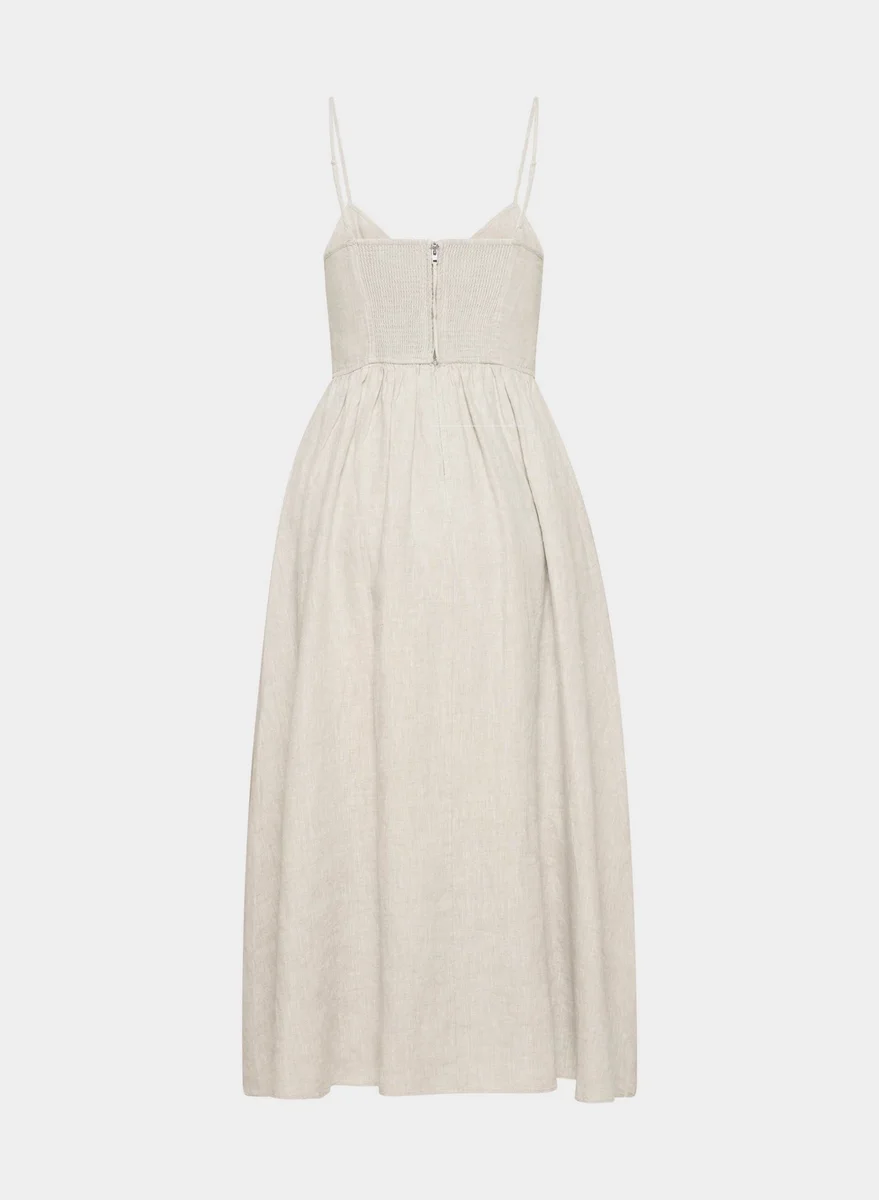 For the modern princessThis is a lined fit-and-flare maxi dress with adjustable straps, a smocked back panel and a sweetheart neckline. It’s made from breathable 100% organic linen with a natural texture and soft, airy feel.