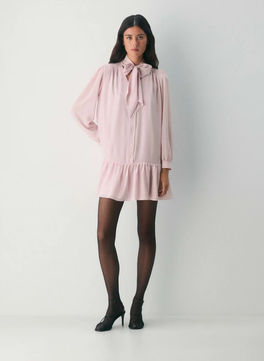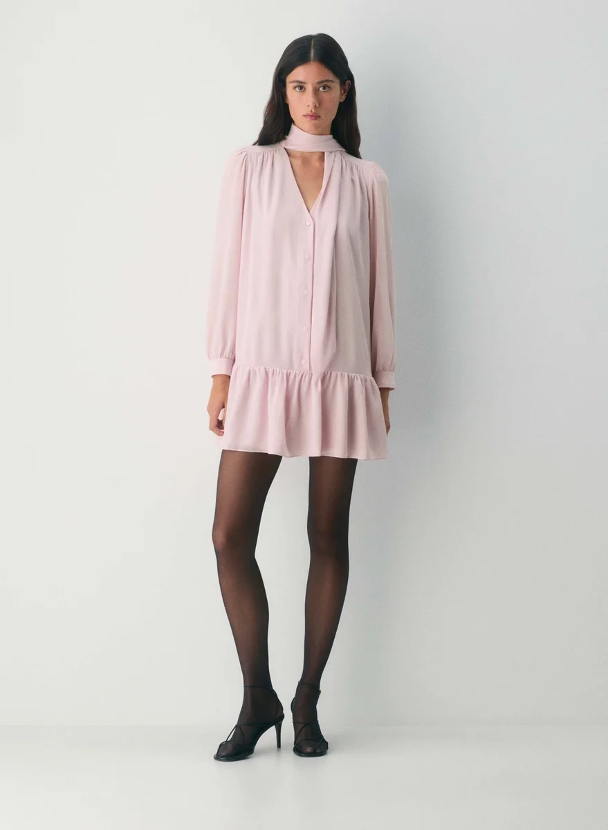 When’s afternoon tea?This is a V-neck mini dress with a front button closure and dropped waist. It’s cut from Fête Chiffon™ — lightweight, semi-sheer fabric with an ethereal drape. This version is made with 55% recycled polyester.