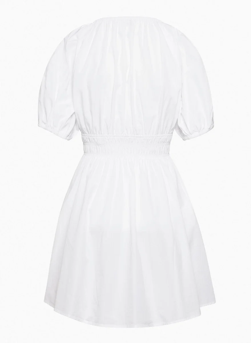 Flounciness courtesy of 100% poplin and our designersThis is a V-neck mini dress with a smocked waist, inseam pockets and puff sleeves. It’s made from