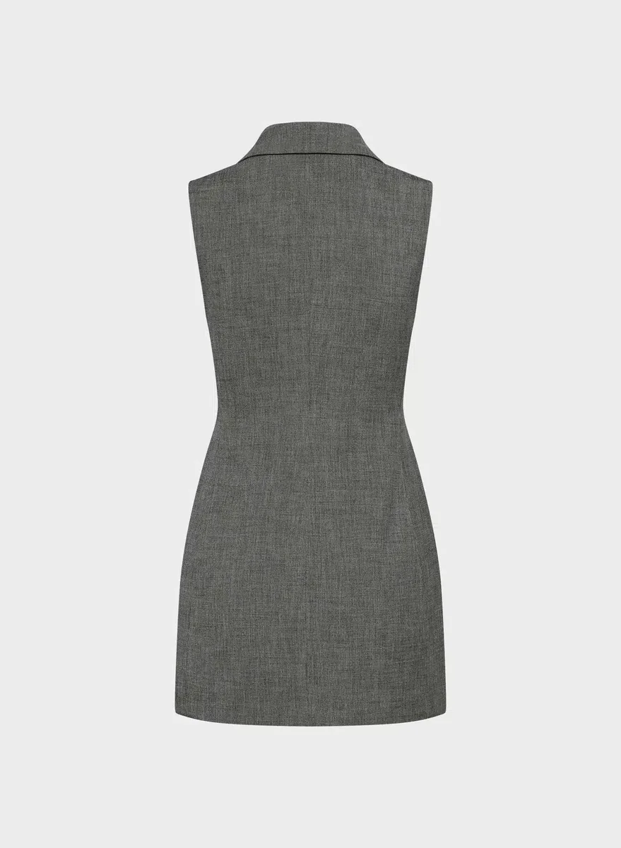This is a V-neck blazer dress with a notched collar, princess seams and darted waist for shaping. It’s expertly tailored with (Re)ssential — softly structured stretch fabric that holds its form while you move easy. This fabric is sourced from a premier Portuguese mill and made with 58% recycled polyester and 28% LENZING™ ECOVERO™ Viscose.