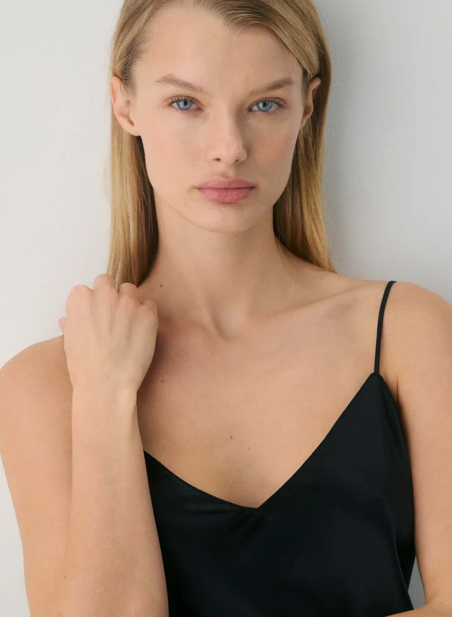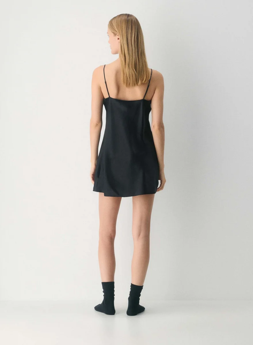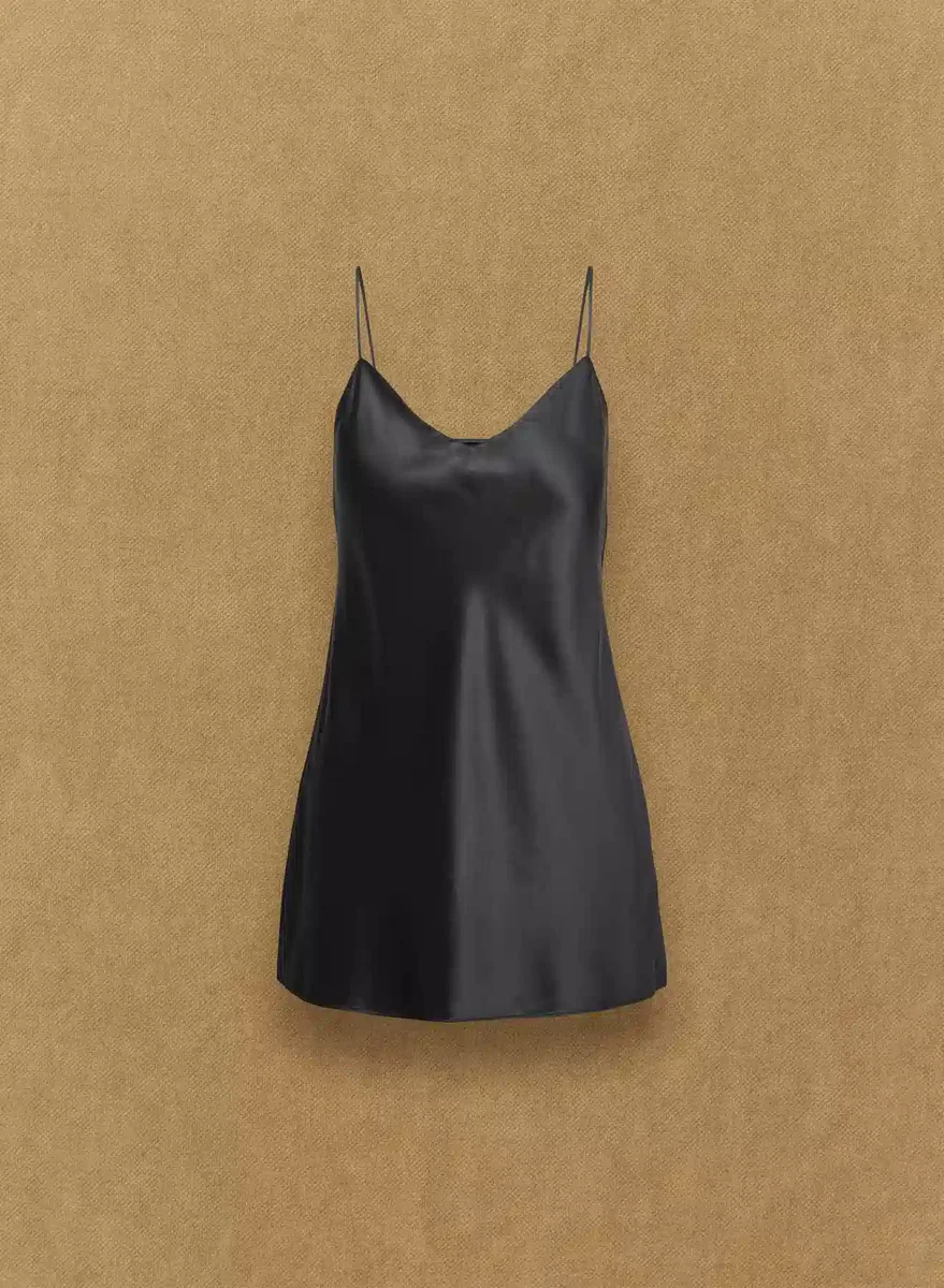 This is a pajama micro slip dress with adjustable straps and a flattering bias cut. It’s cut from lightweight, drapey silk charmeuse with a smooth finish and lustrous sheen. Feels as luxe as it looks.