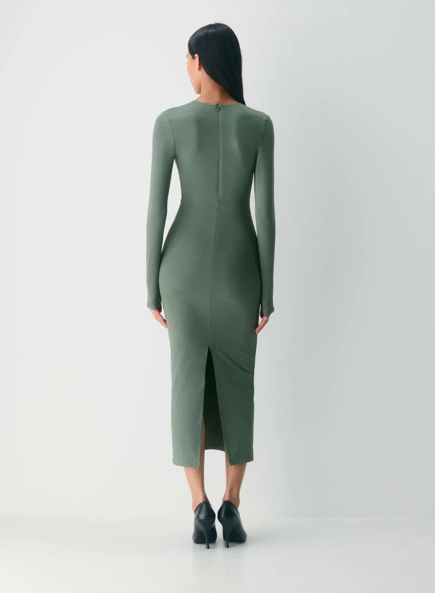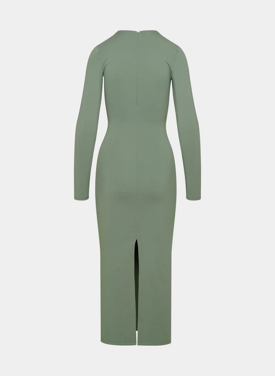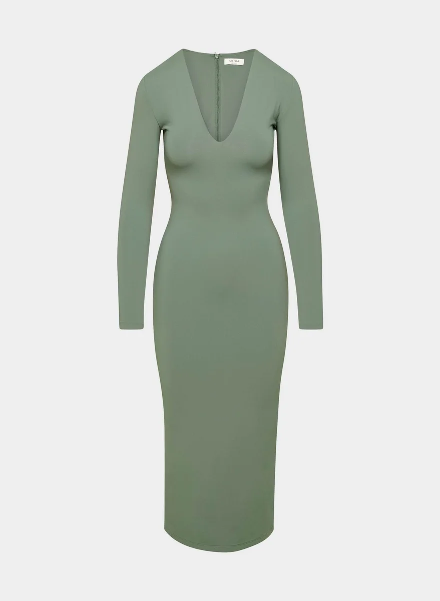 Oh, the dramaThis is a longsleeve maxi dress with a deep V neckline and double-layer fabric for a supportive, body-shaping fit. It’s made with Aritzia’s Original Contour — luxe, ultra-flattering fabric coveted for its smoothing effect and second-skin feel. Nothing more essential.