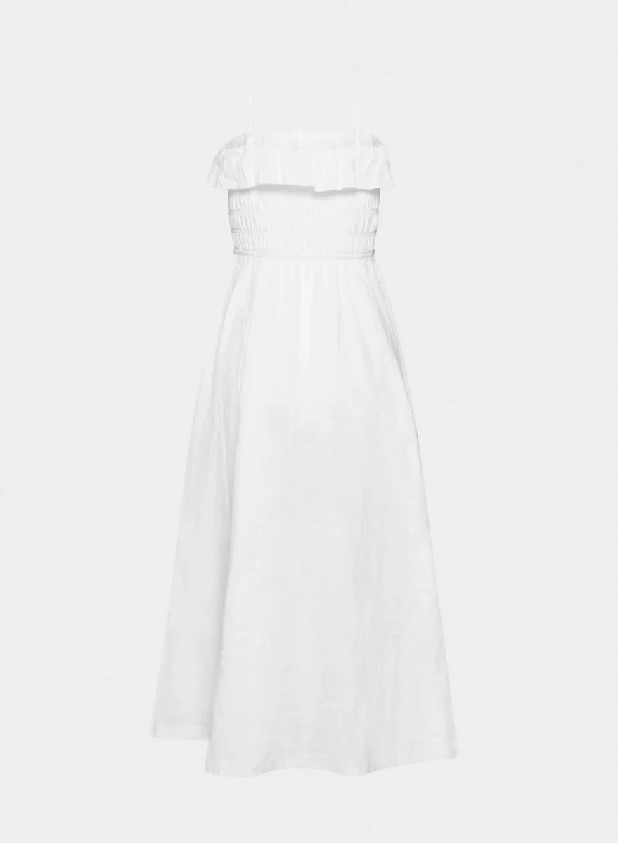 Wander the beach in thisThis is a fit-and-flare maxi dress with inseam pockets and a smocked bodice for a flexible fit. It’s cut from breathable 100% organic linen with a natural texture and soft, airy feel.