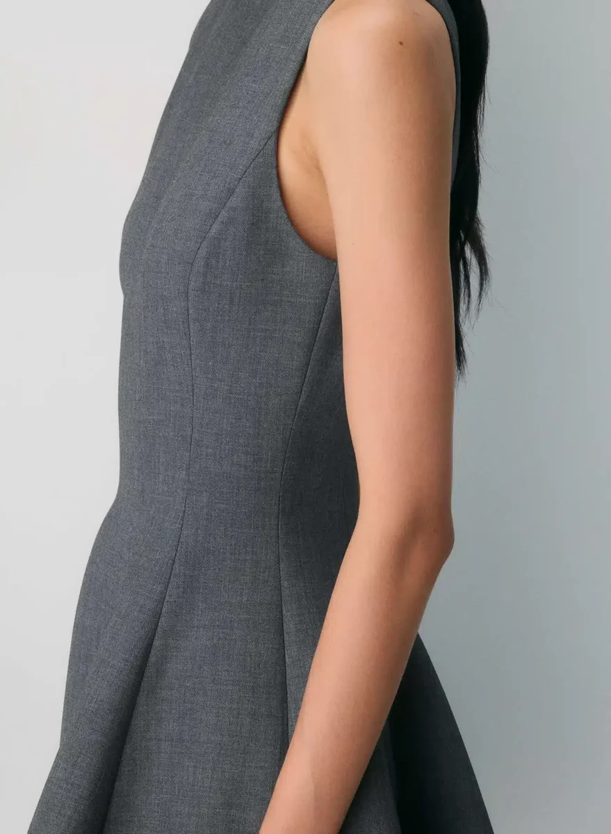 This is an hourglass micro dress with princess seams for shaping. It’s made with (Re)ssential — softly structured stretch fabric that holds its form while you move easy. This fabric is sourced from a premier Portuguese mill and made with 54% recycled polyester and 26% LENZING™ ECOVERO™ Viscose.