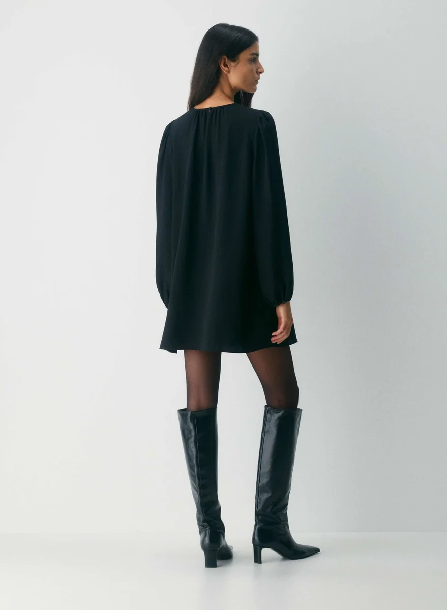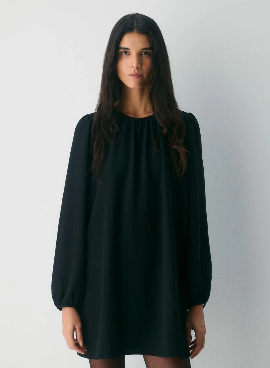 This is a mini shift dress with a keyhole cutout and a relaxed fit. It’s made with (Re)twill™ — breezy, lightweight fabric with a beautifully soft drape. It’s made from 100% recycled polyester.
