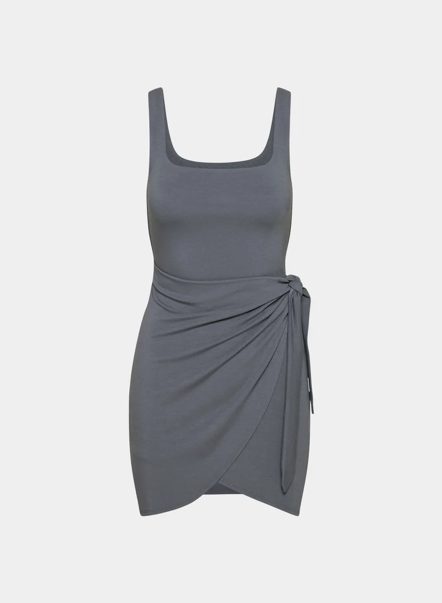 Unless your aunt is very cool. A Wilfred signature and resort-wear essential, this is a slim-fit mini wrap dress with a skirt that ties at the side. It’s made with GoodLux — luxuriously soft, drapey fabric made with LENZING™ ECOVERO™ Viscose.
