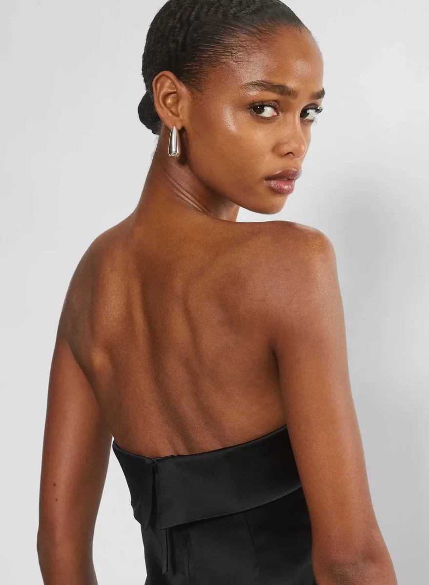 Your lip gloss is jealousThis is a lined strapless mini dress with princess seams for shaping. It’s cut from sleek satin with a soft sheen and smooth feel. This fabric is made with Naia™ — luxurious wood-based fibre sourced from responsibly managed forests and produced through an environmentally low-impact process that reduces carbon and water footprint.