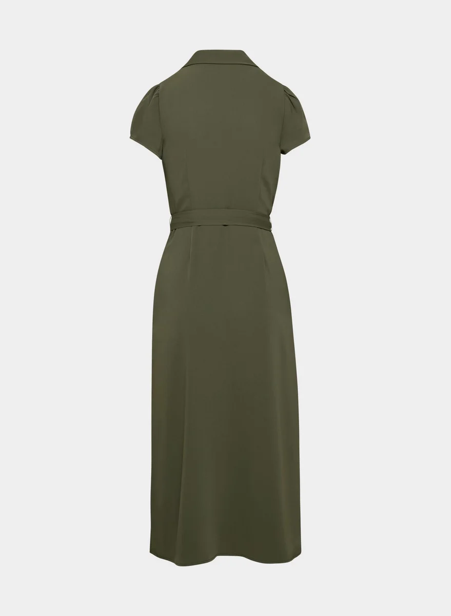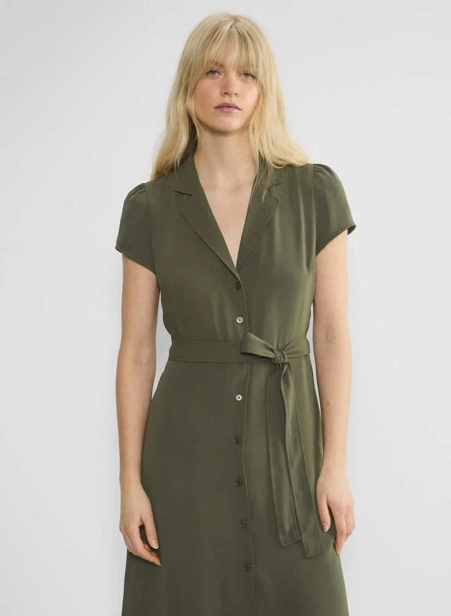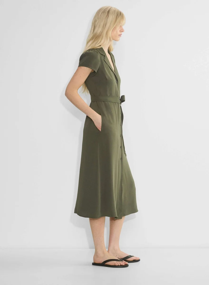Matte satin midi shirt dress