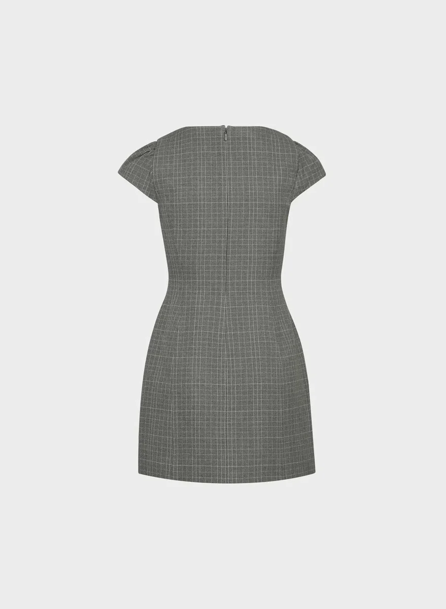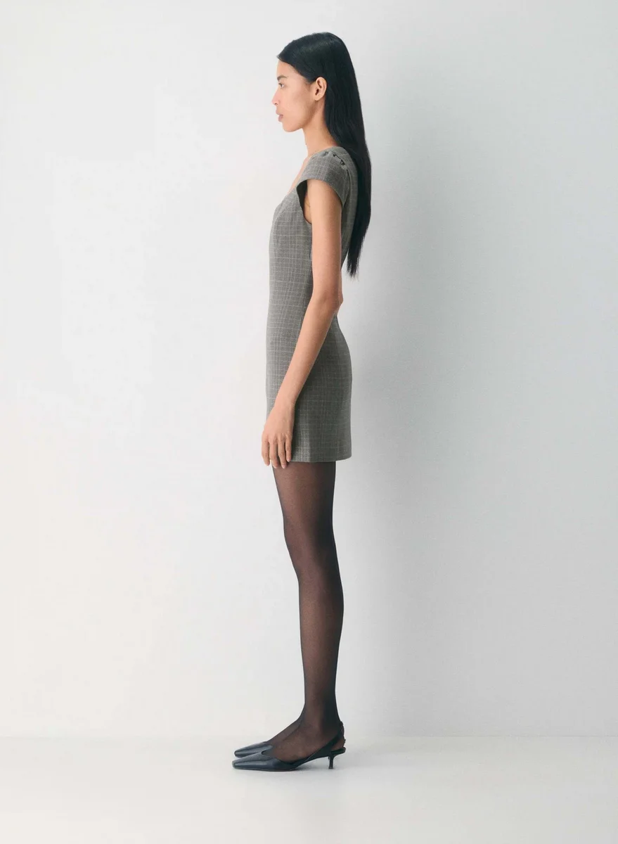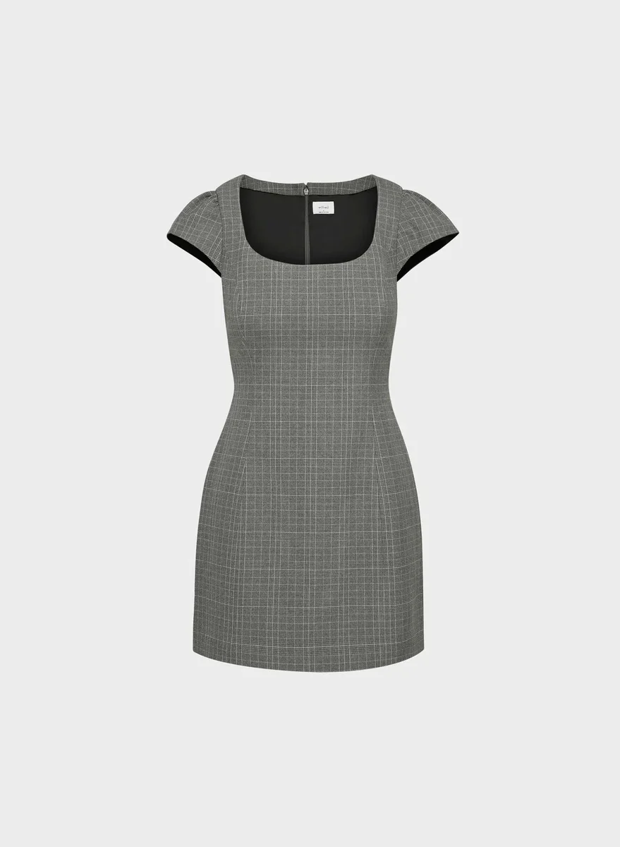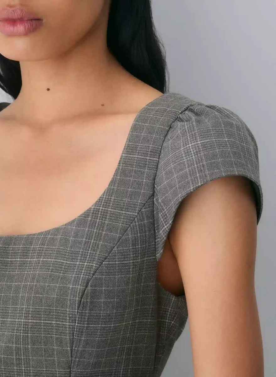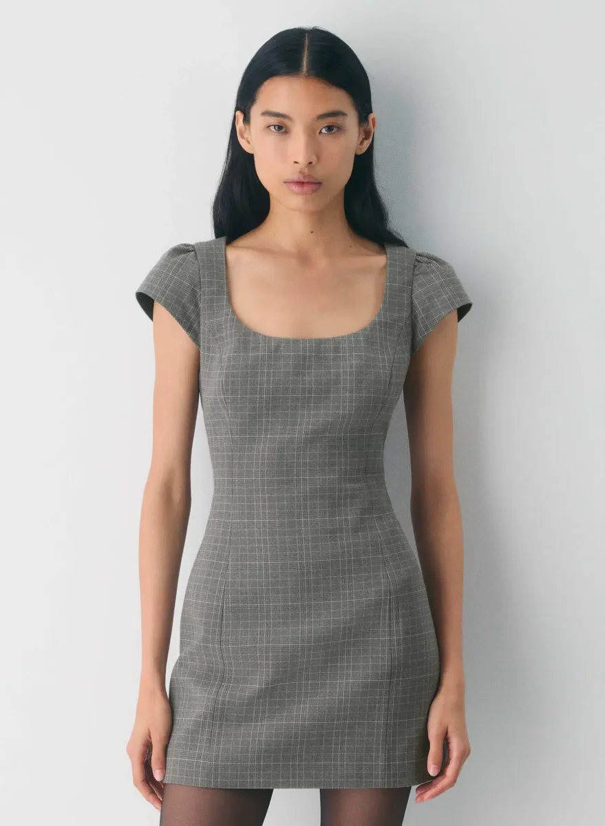 It’s take your bare legs to work dayThis is a scoopneck micro dress with puff sleeves and princess seams for shaping. It’s made from softly structured twill