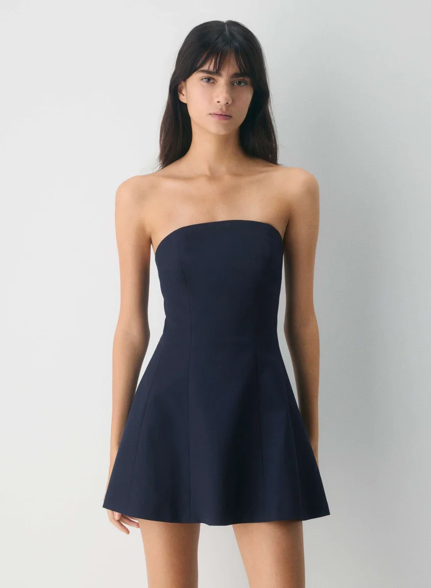 Going out tonight?This is a lined fit-and-flare micro dress with princess seams for shaping. It’s made with softly structured suiting fabric with a smooth feel. This fabric is sourced from a premier Portuguese mill and made with 60% recycled polyester and 29% LENZING™ ECOVERO™ Viscose.