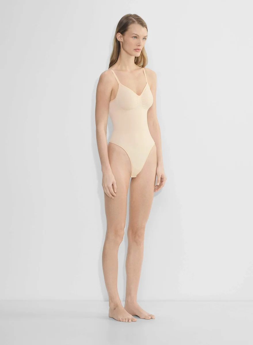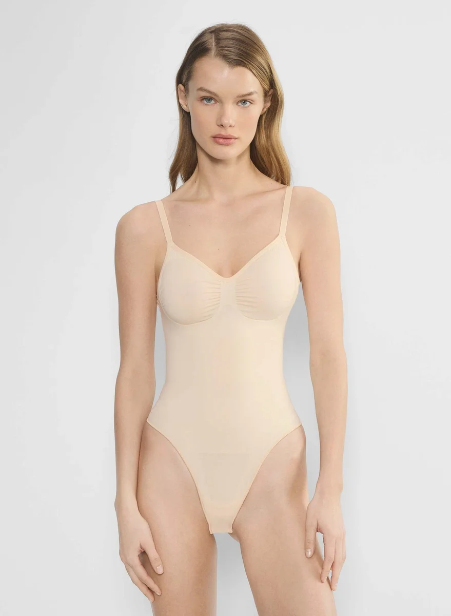Designed to be worn as an undergarment, this is a high-support, low-back bodysuit with a thong-cut bottom. It’s made cut from Aritzia’s ShapeEnhance™ Seamless — shapewear fabric with high support and compression for a secure, held-in feel. Targeted shaping enhances your natural curves while seamless construction provides a smooth look and feel.