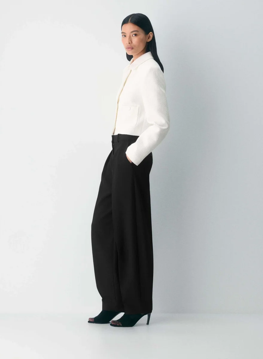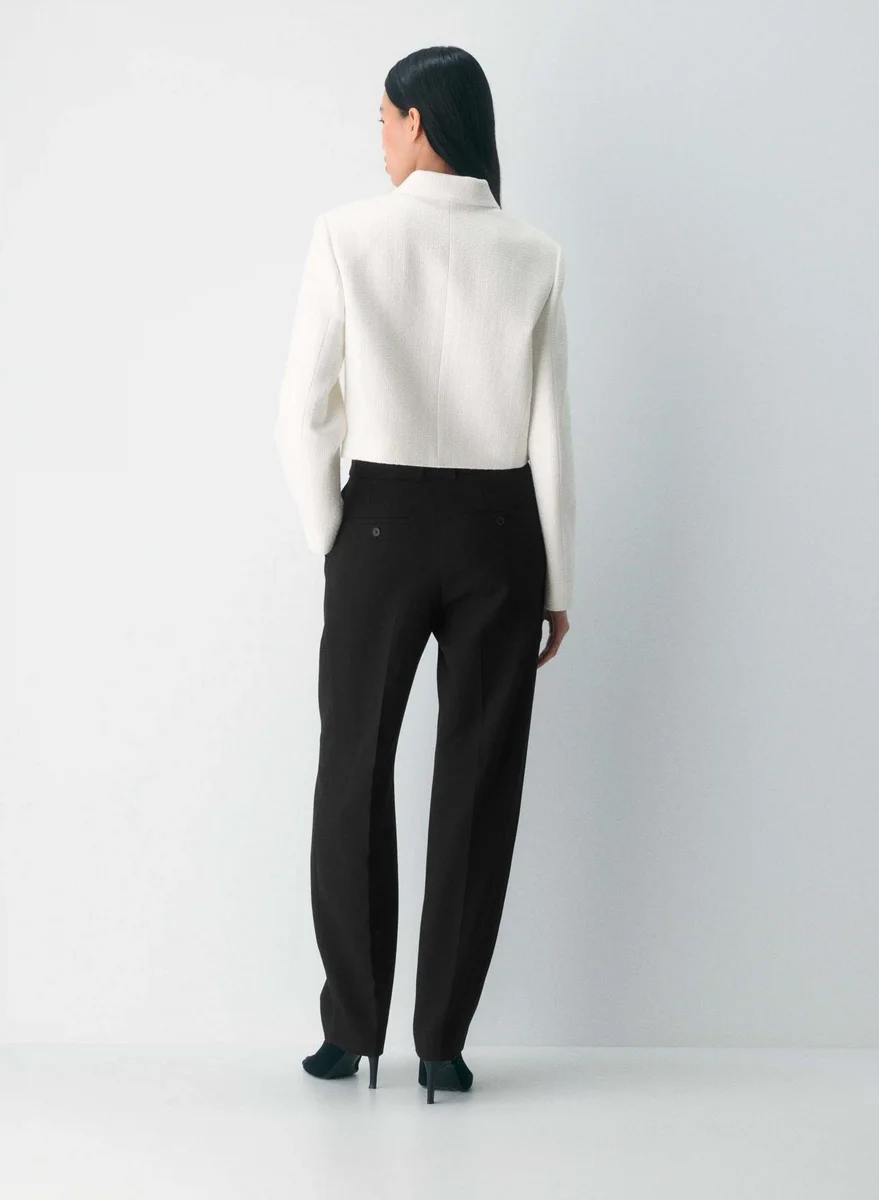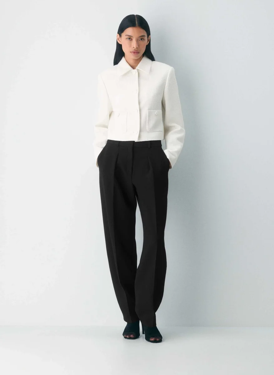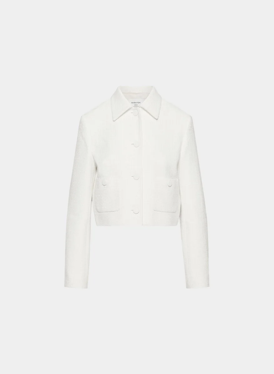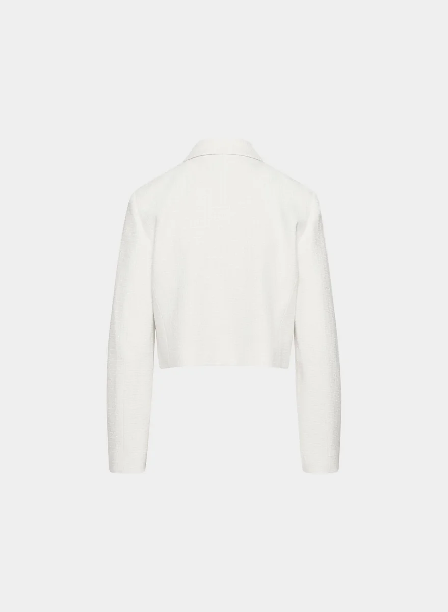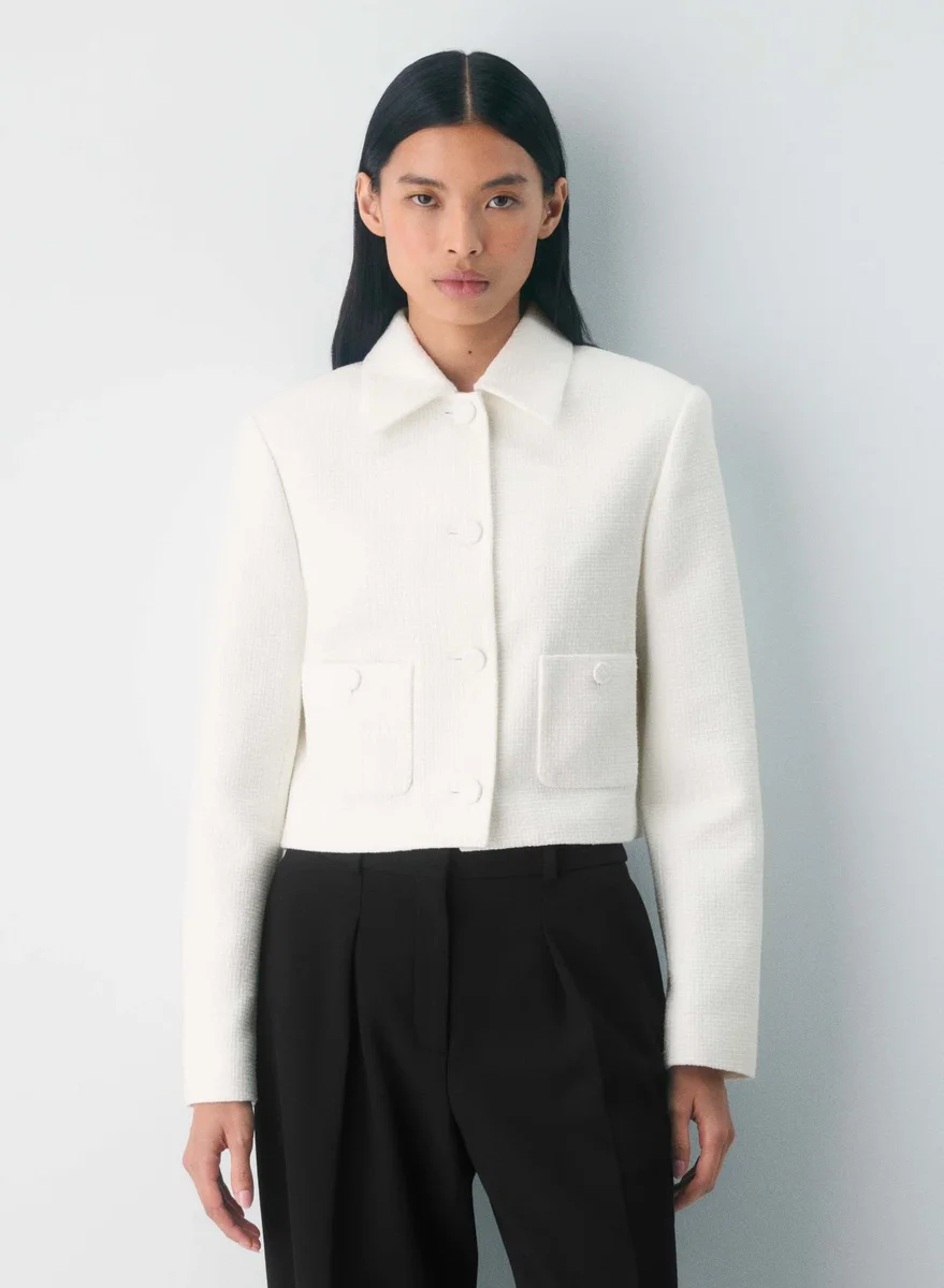 Call this your promotion jacketThis is a fully lined button-up jacket with patch pockets and shoulder pads. It’s expertly tailored with softly structured tweed with a textured feel. This fabric is made with 35% recycled polyester.