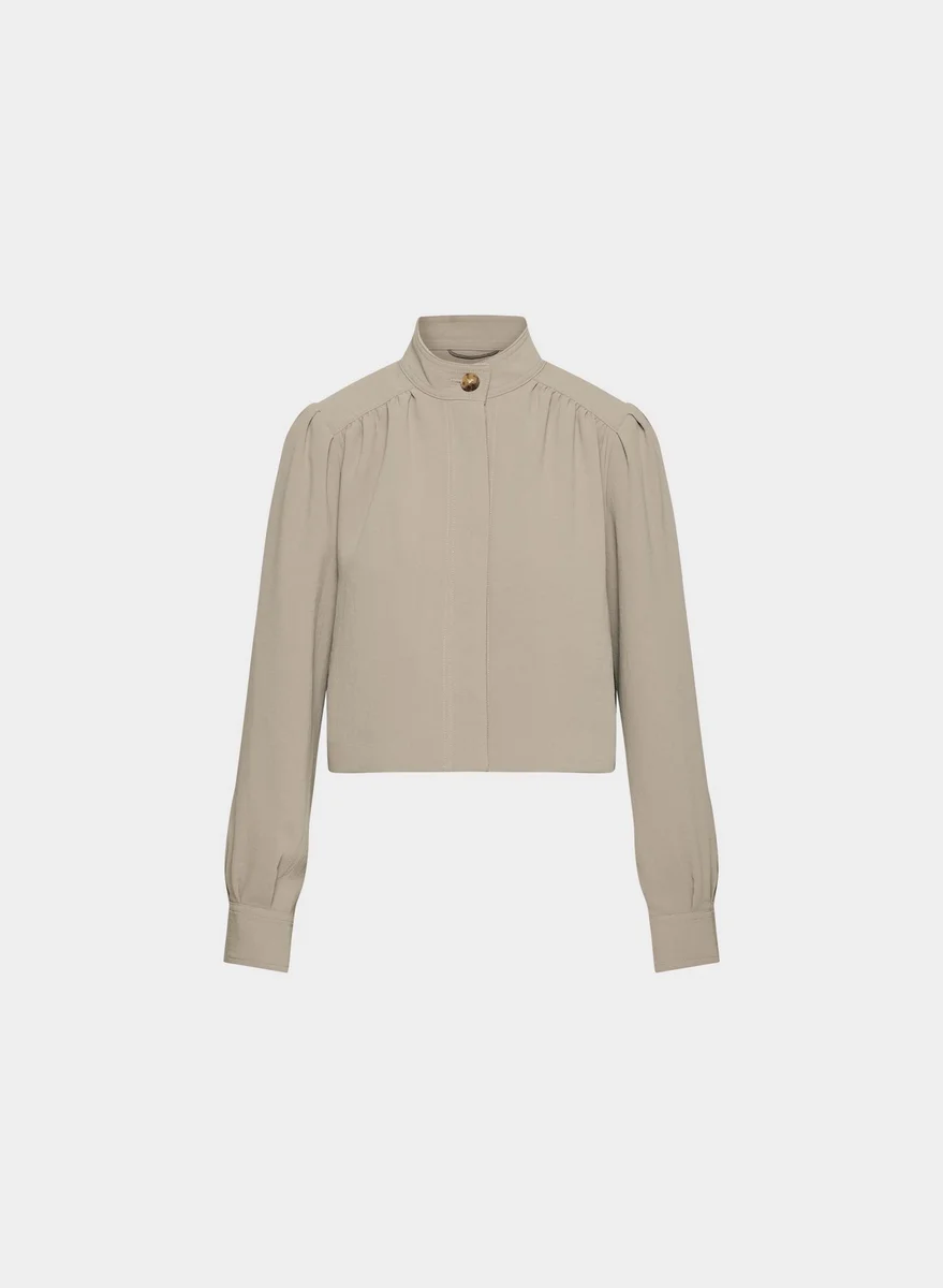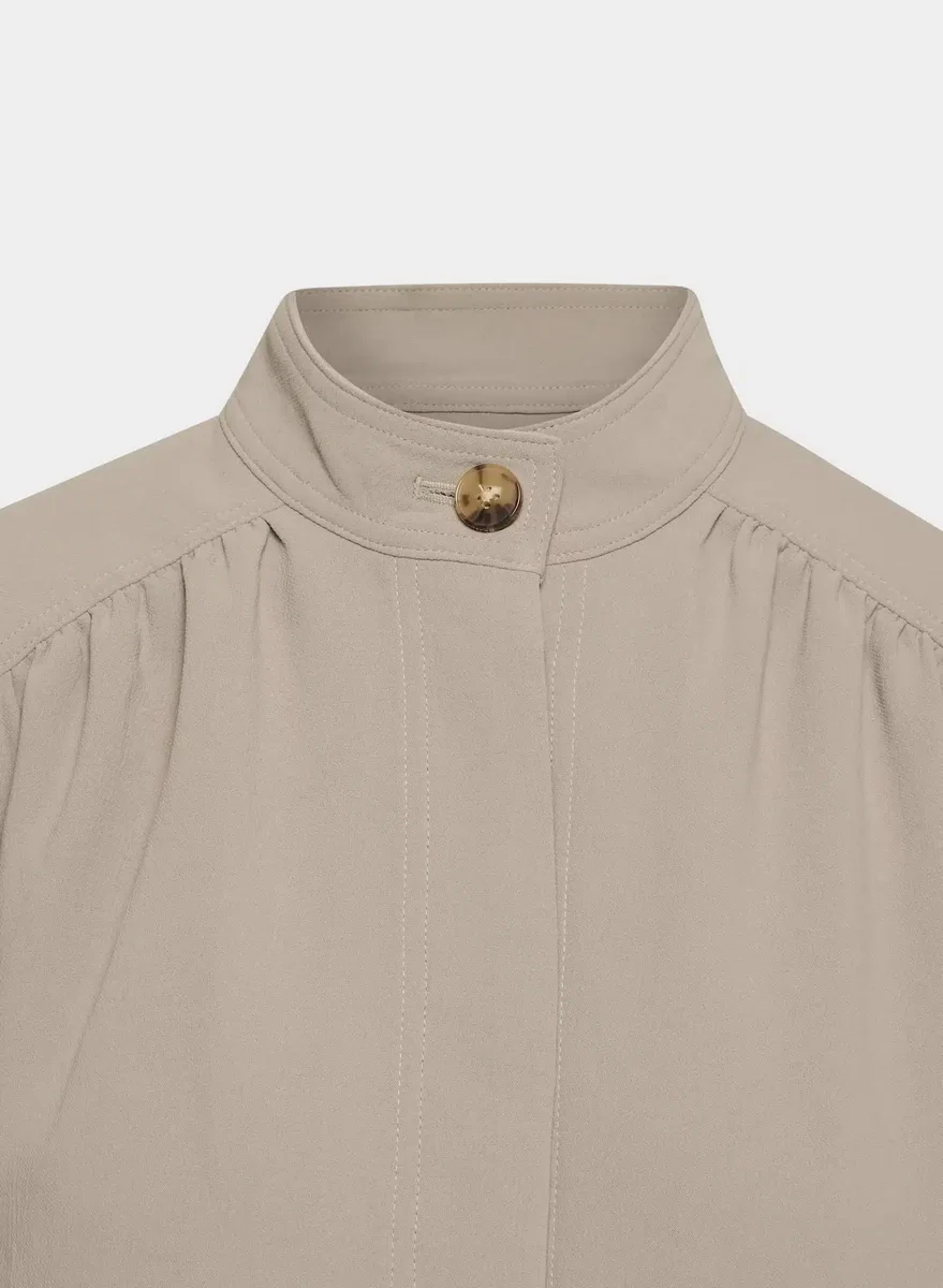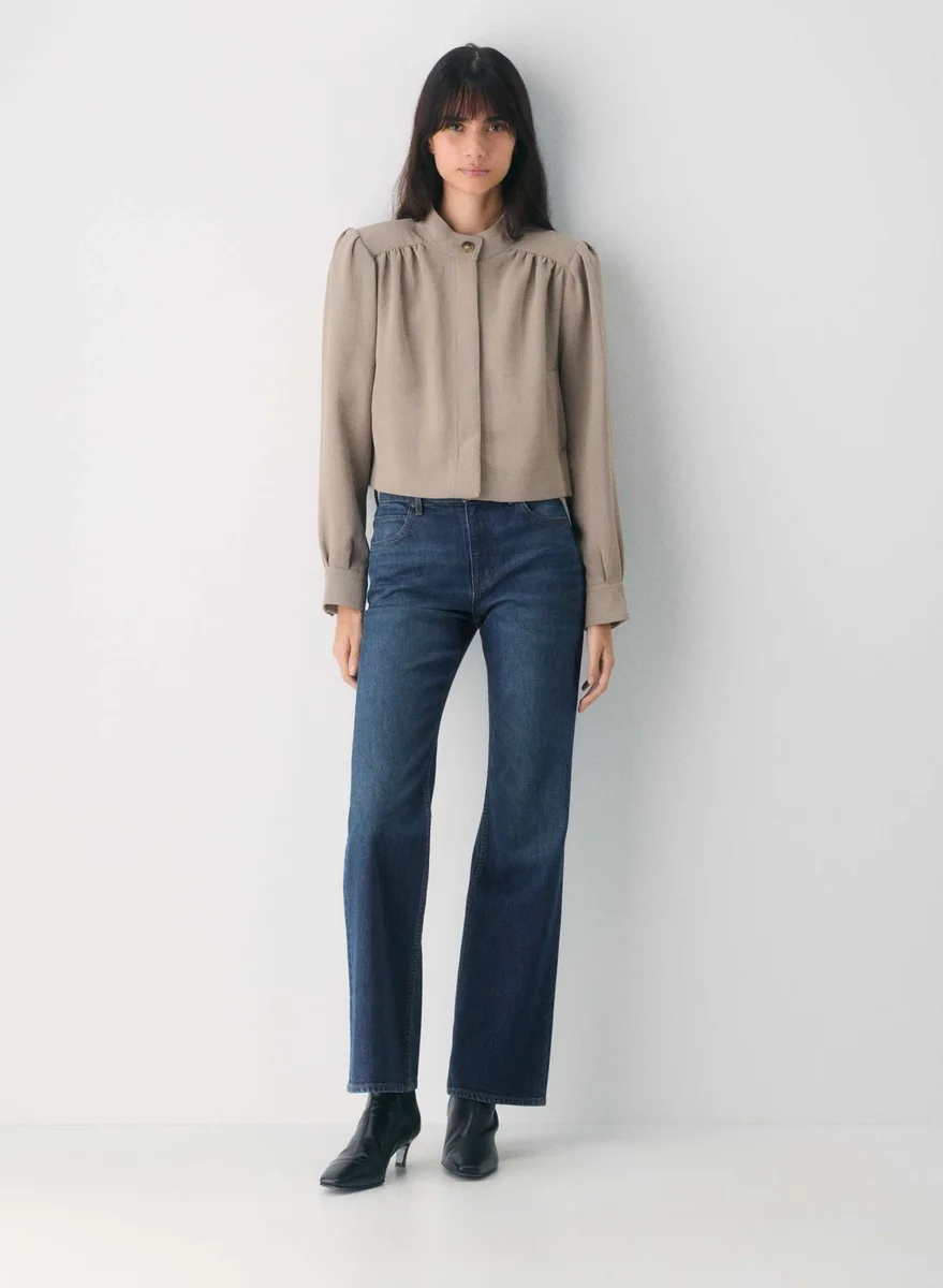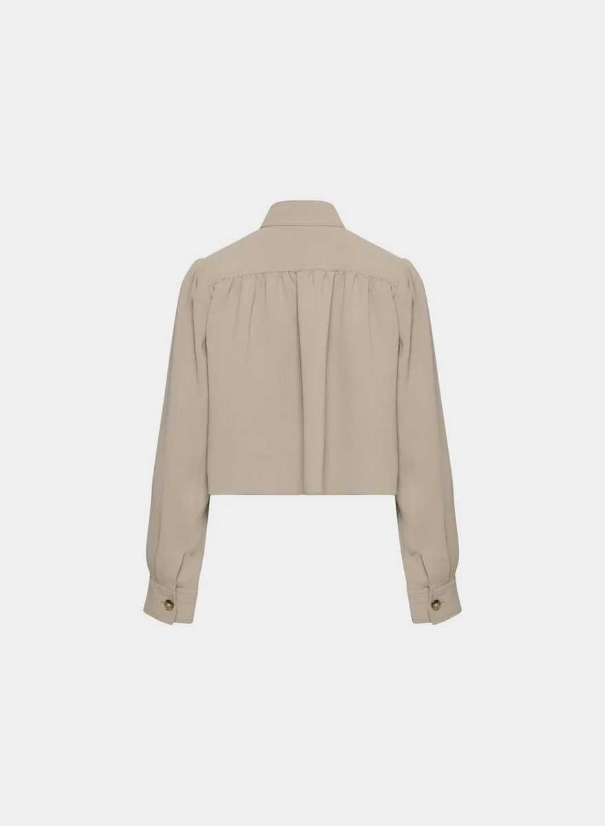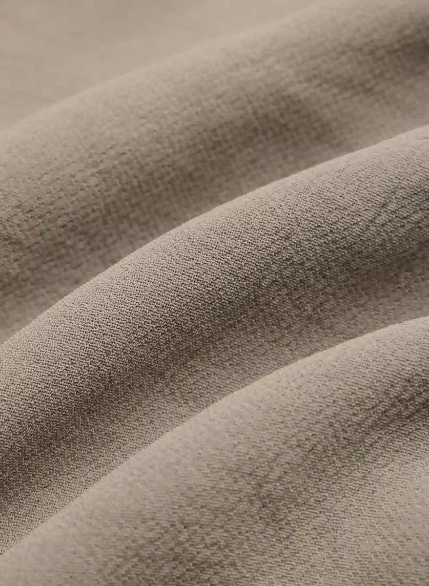 This is a fully lined jacket with a hidden button closure, welt pockets and shoulder pads for structure. It’s finely tailored with Crepette™ — our one-of-a-kind Japanese crepe fabric beloved for its subtle texture, breezy drape and the fact that it basically never wrinkles.