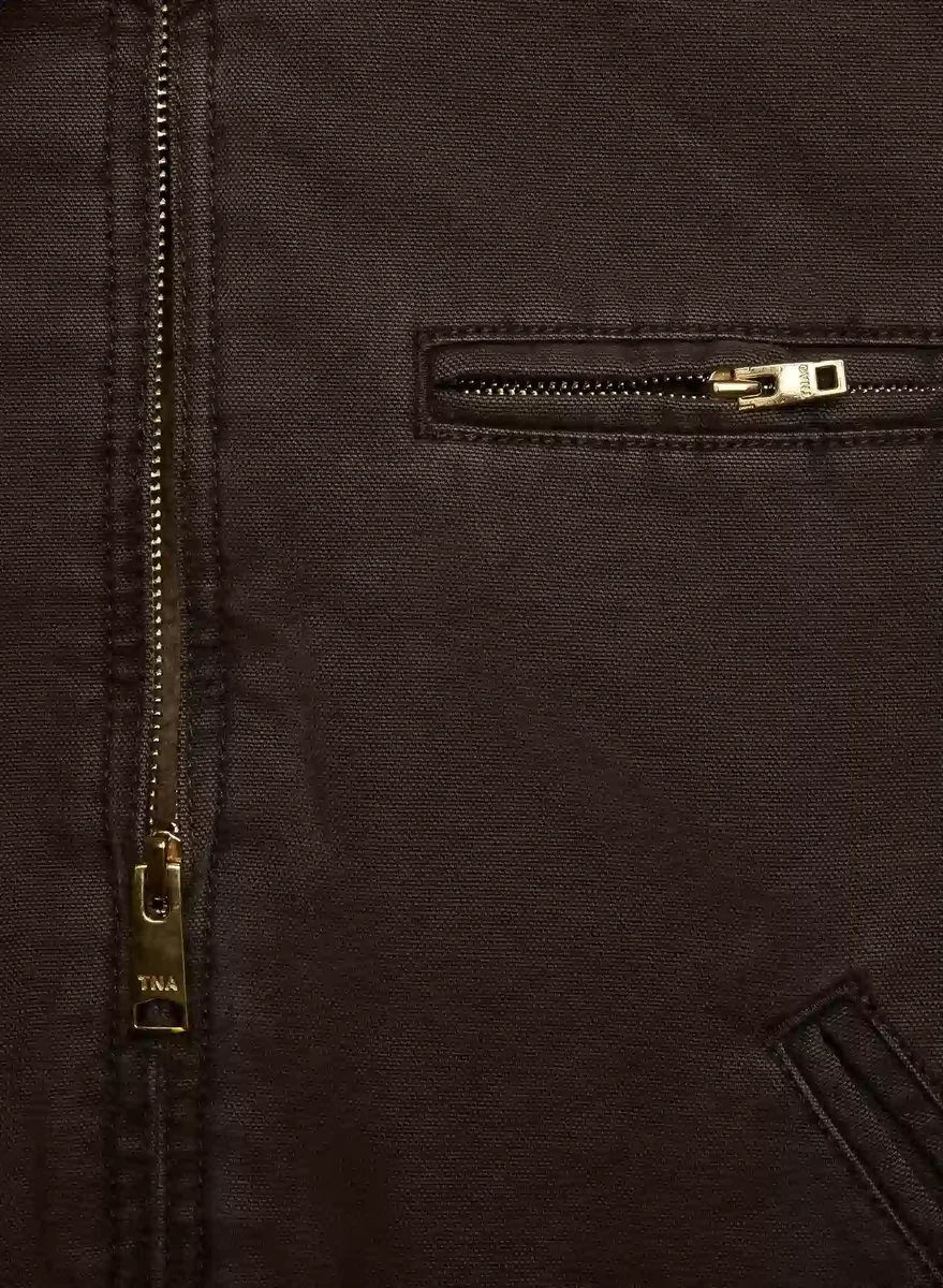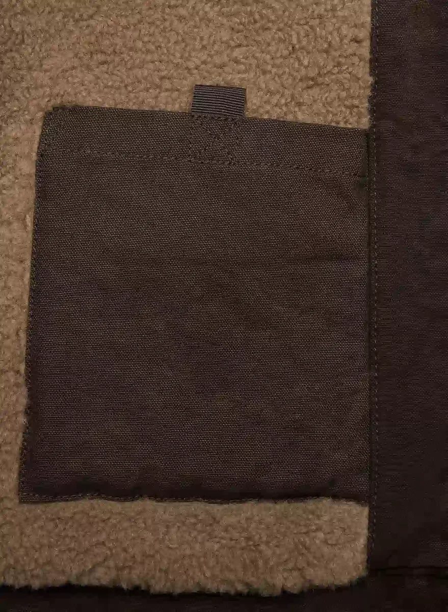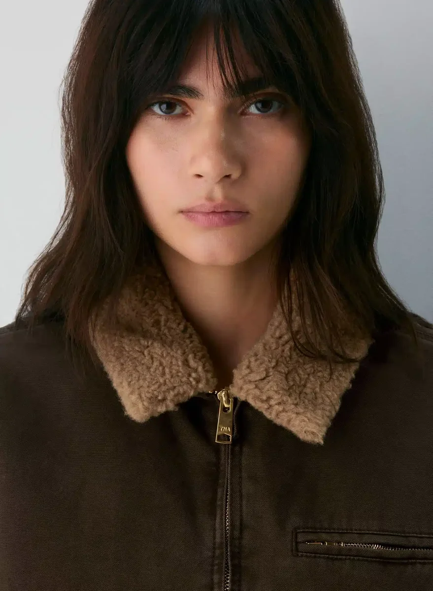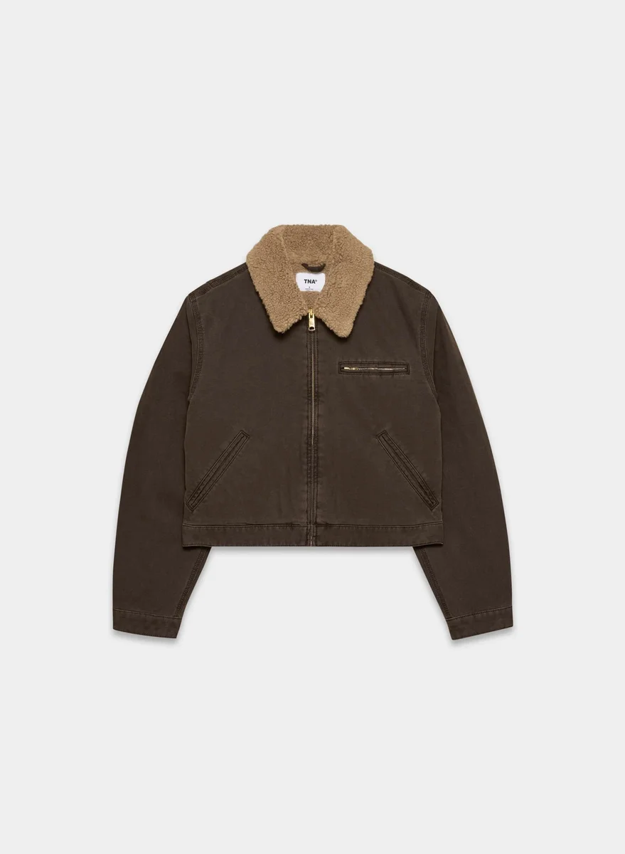 This is an insulated zip-up workwear jacket with faux shearling lining and front welt pockets. It’s filled with PrimaLoft® Black Insulation — premium vegan down made from 100% recycled materials and specially engineered to deliver lightweight warmth with less bulk. The outside’s constructed with Heritage Canvas — 100% cotton canvas with a softly structured feel and timeless look.