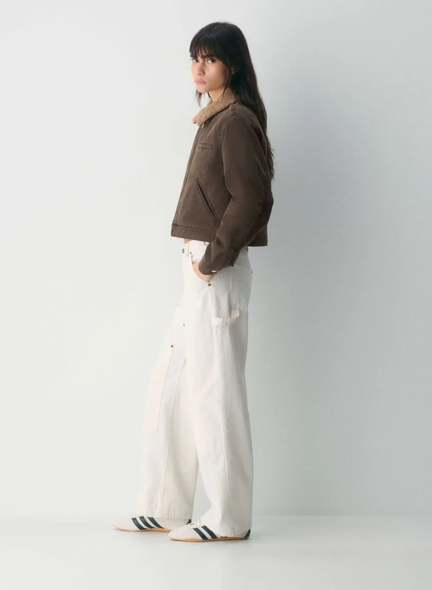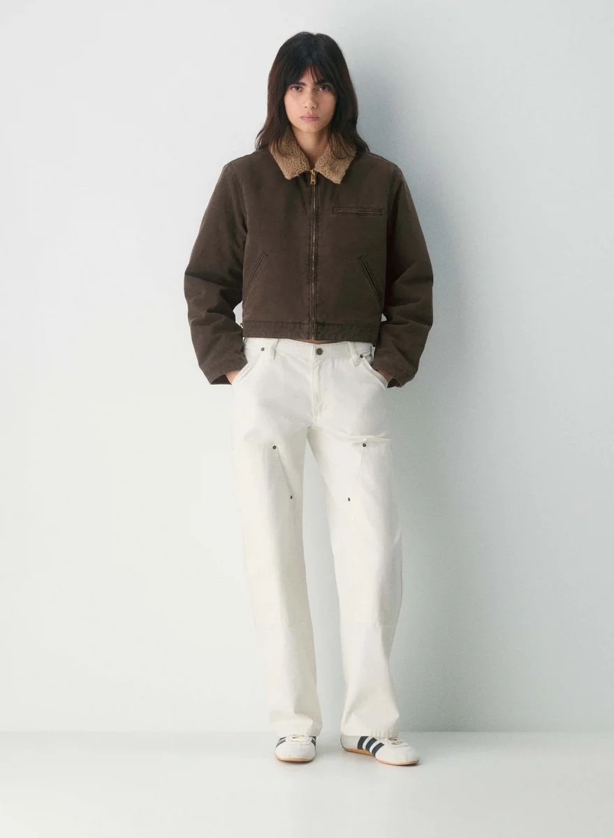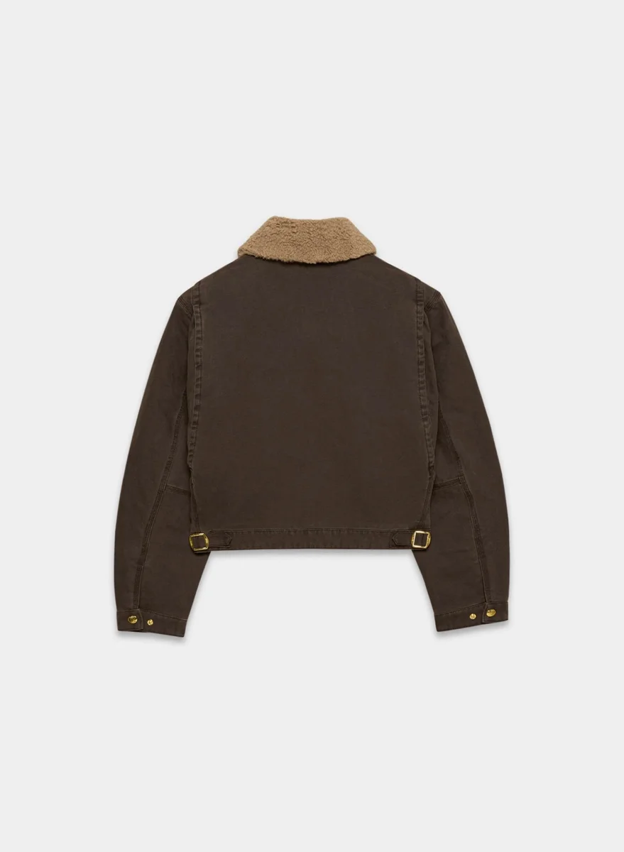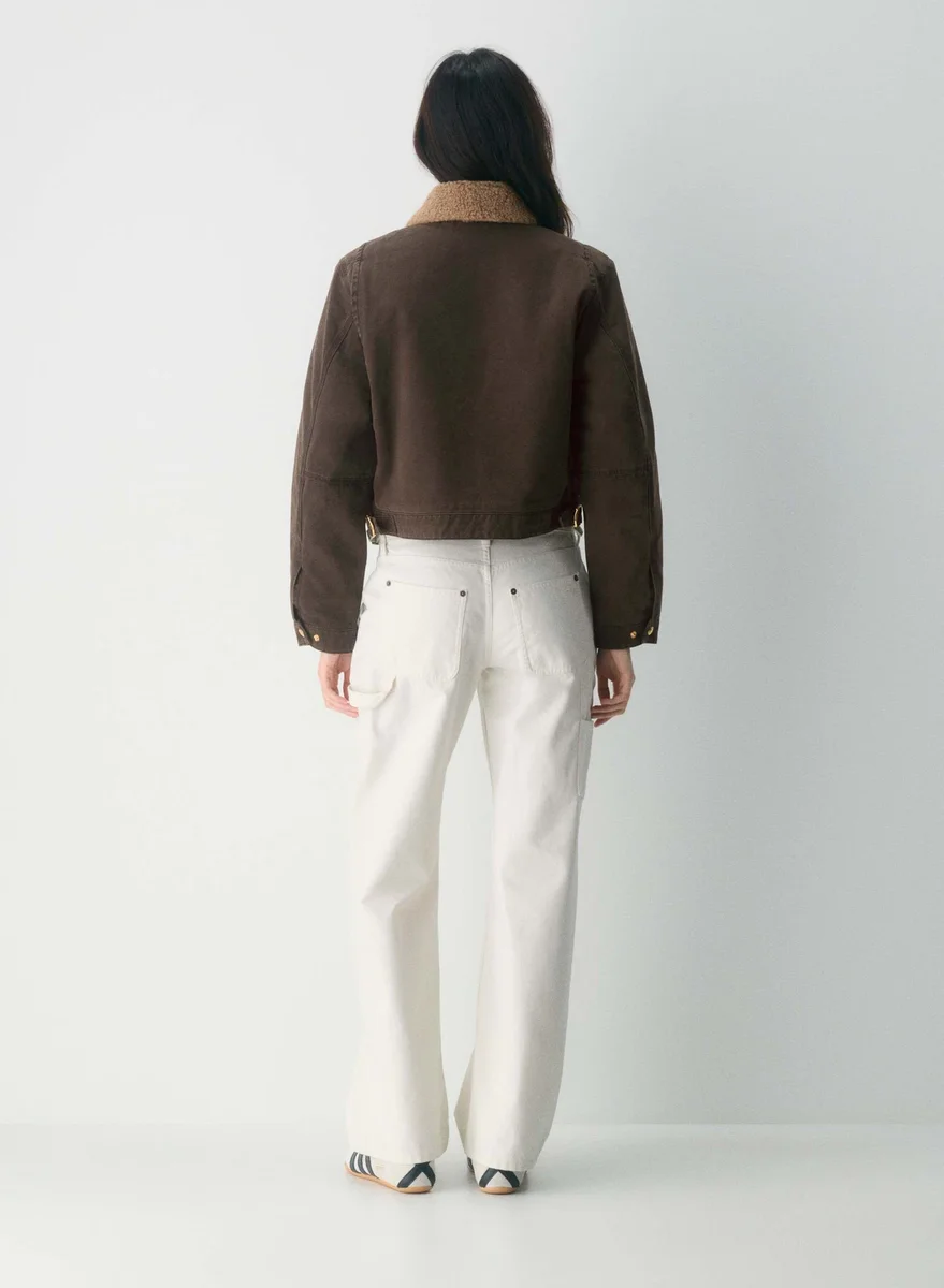 This is an insulated zip-up workwear jacket with faux shearling lining and front welt pockets. It’s filled with PrimaLoft® Black Insulation — premium vegan down made from 100% recycled materials and specially engineered to deliver lightweight warmth with less bulk. The outside’s constructed with Heritage Canvas — 100% cotton canvas with a softly structured feel and timeless look.