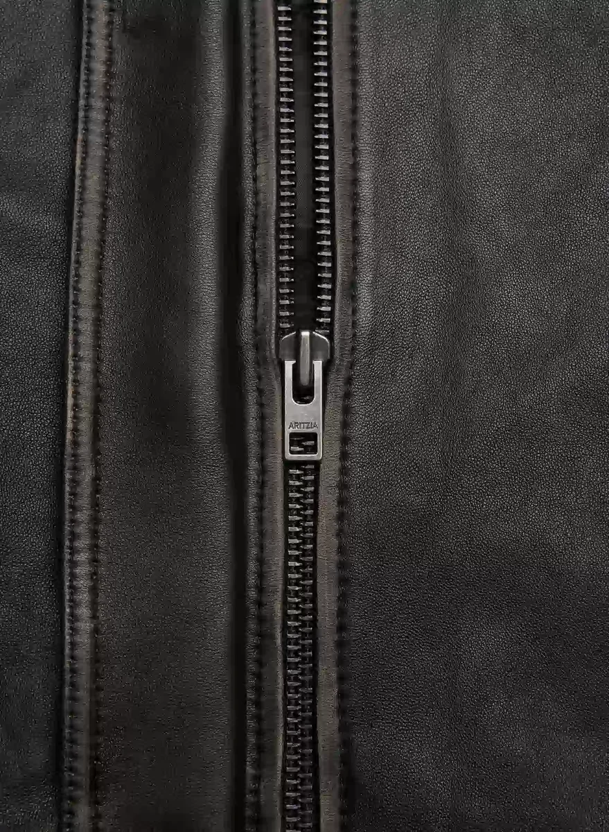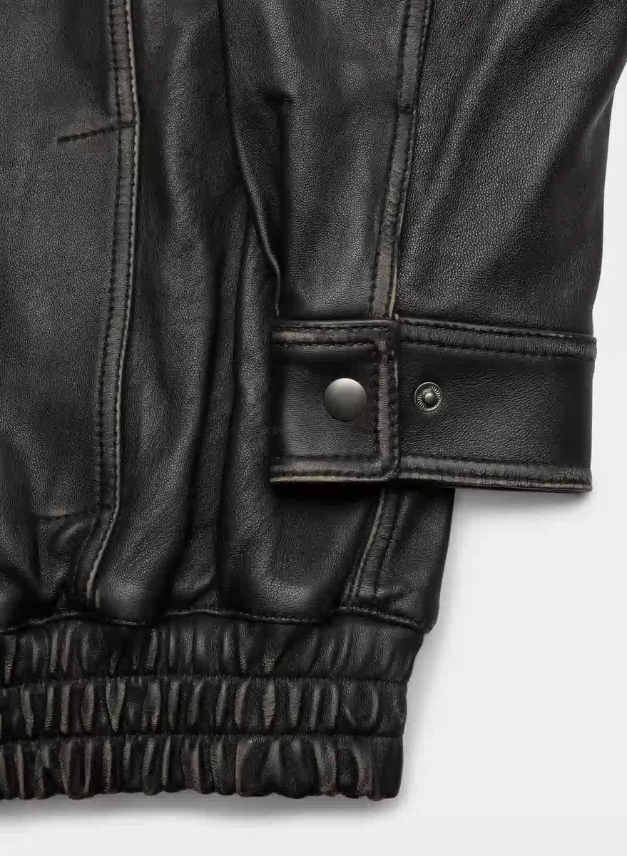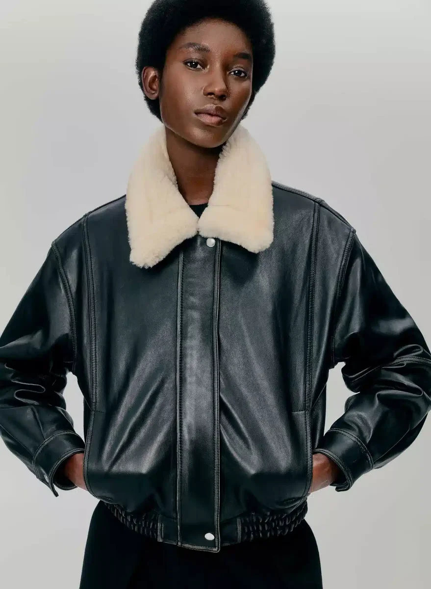 Pilot license and registration?This is an aviator jacket with quilted cupro lining, a shearling collar and inseam pockets. It’s expertly crafted from Nappa Leather — 100% lamb leather with a buttery soft, luxuriously smooth look and feel. This leather features a unique, vintage-like finish.