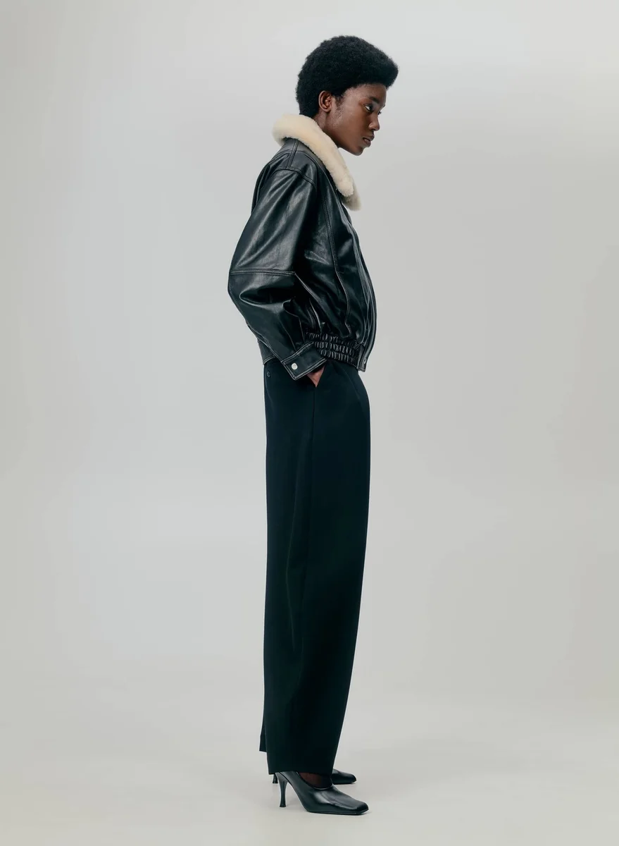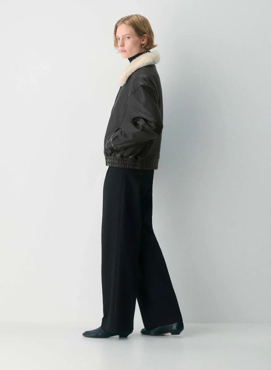 Content: 100% leather; Lining: 100% cupro; Shearling Trim: 100% leather