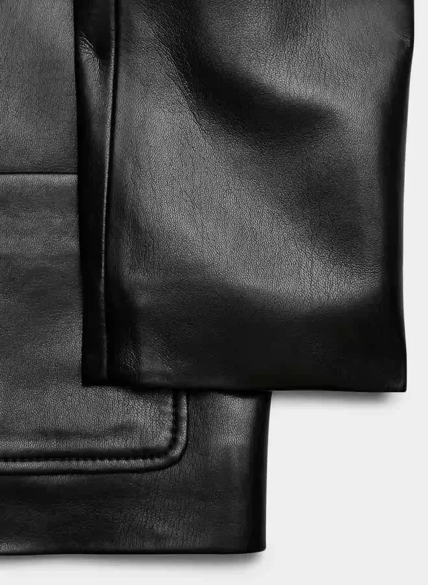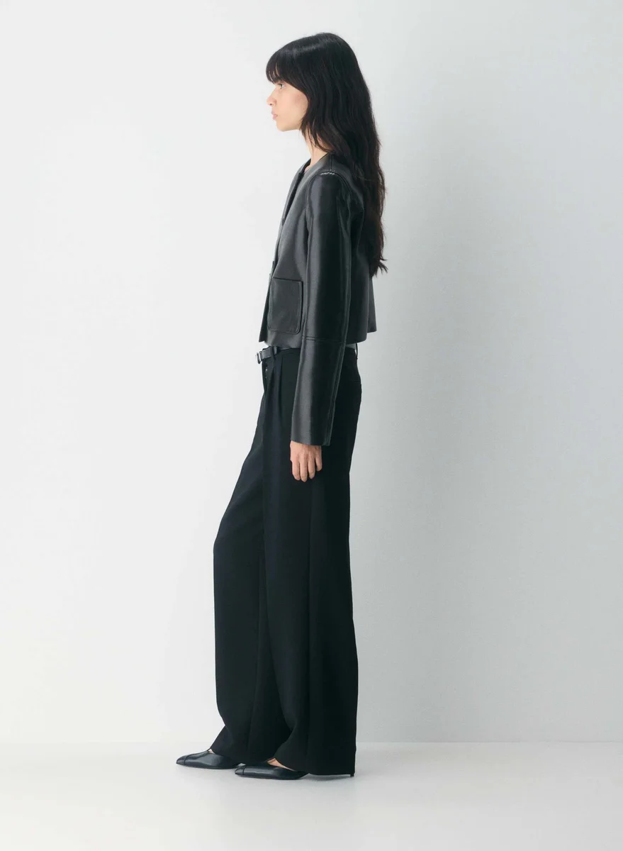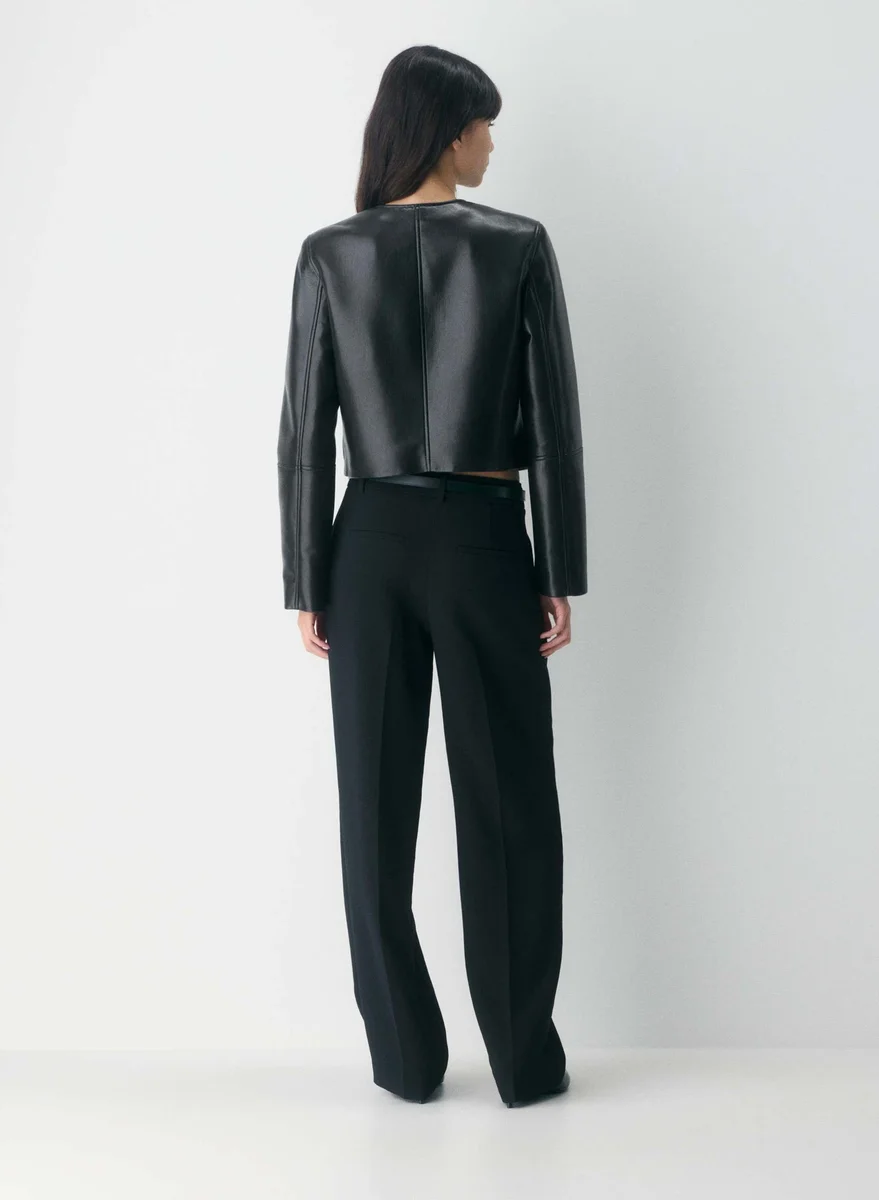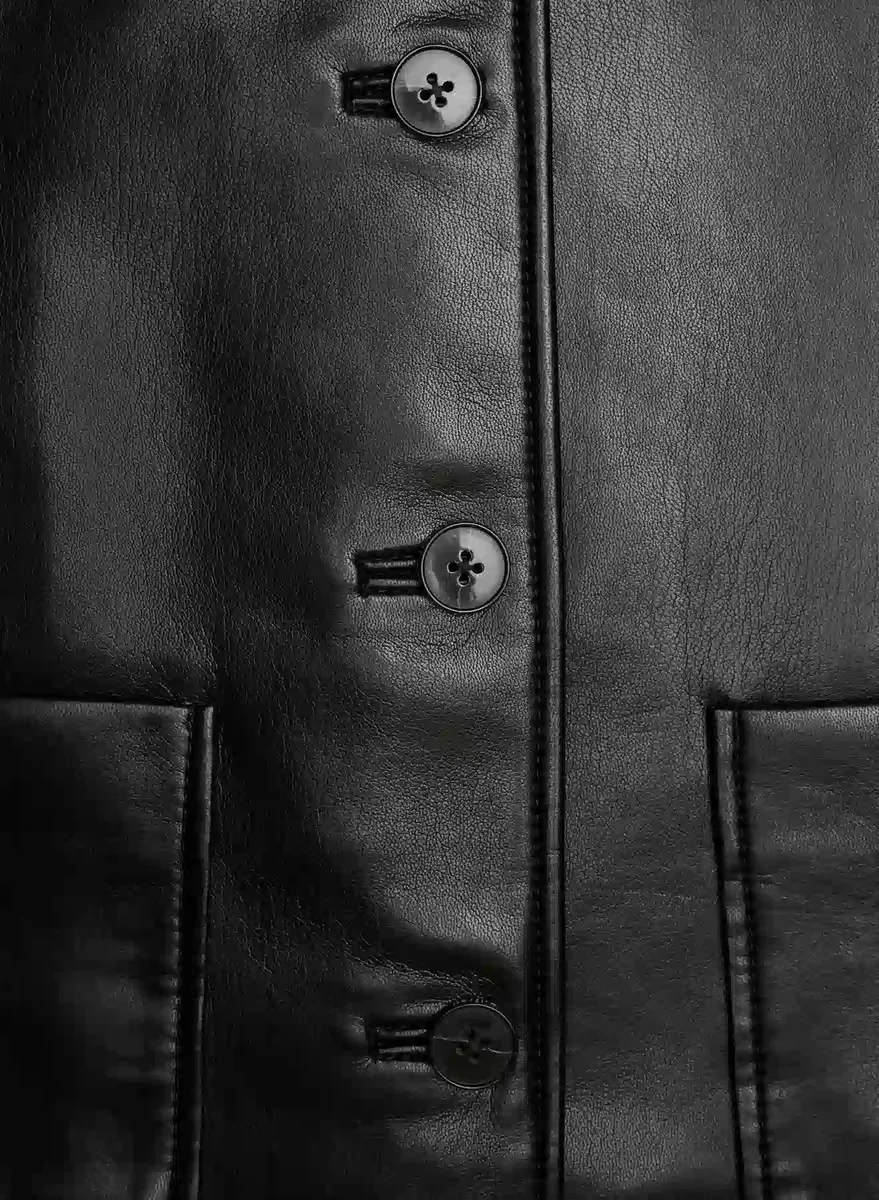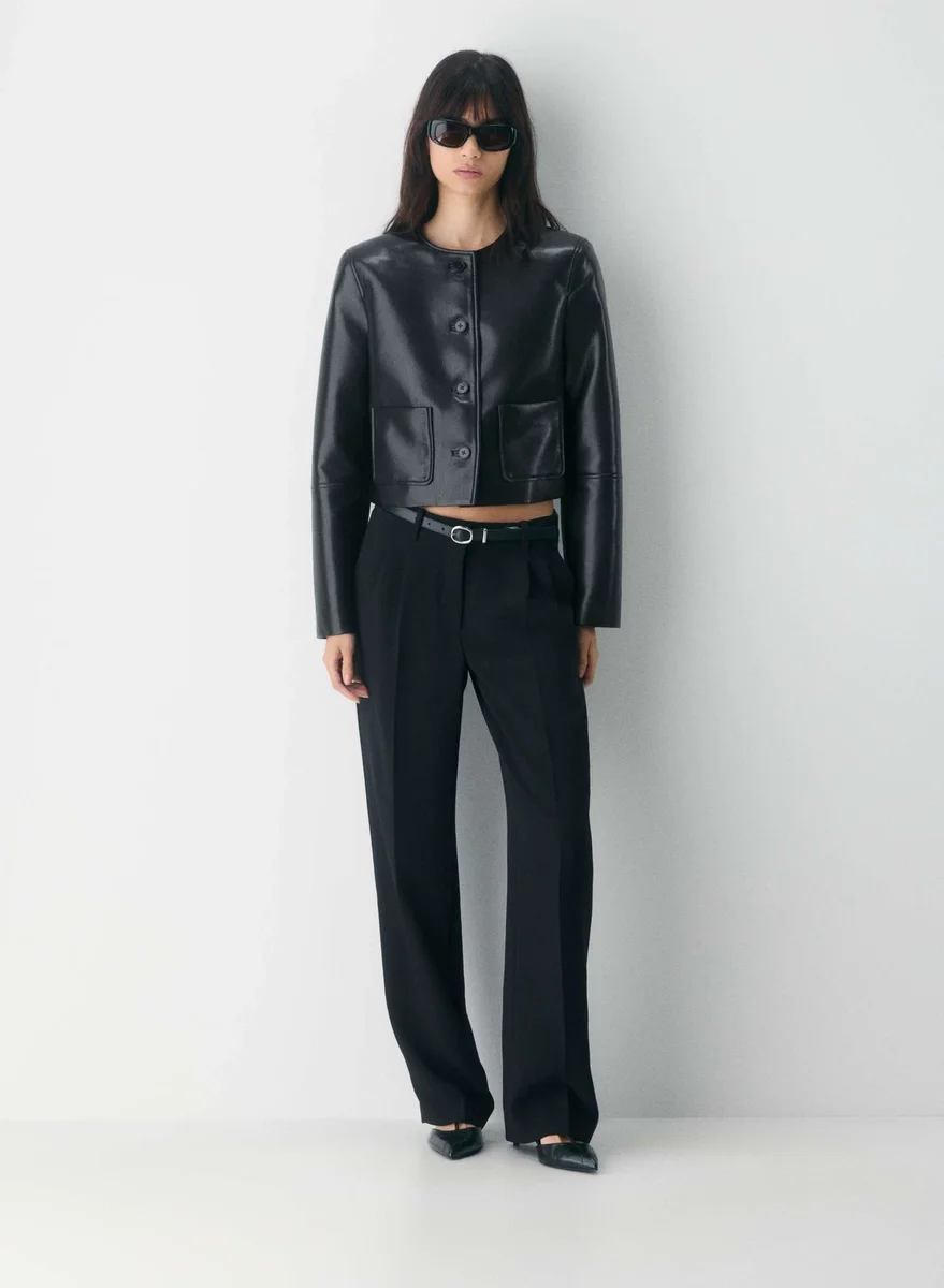 This is a lined collarless jacket with a classic fit. It’s made with UnReal Leather — our timeless, innovative fabric with an authentic drape and soft sheen. Looks and feels so real, it’s kind of unreal.