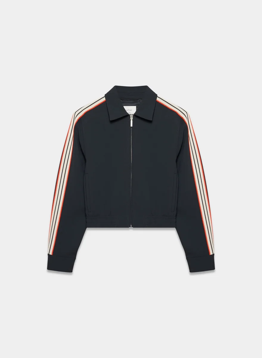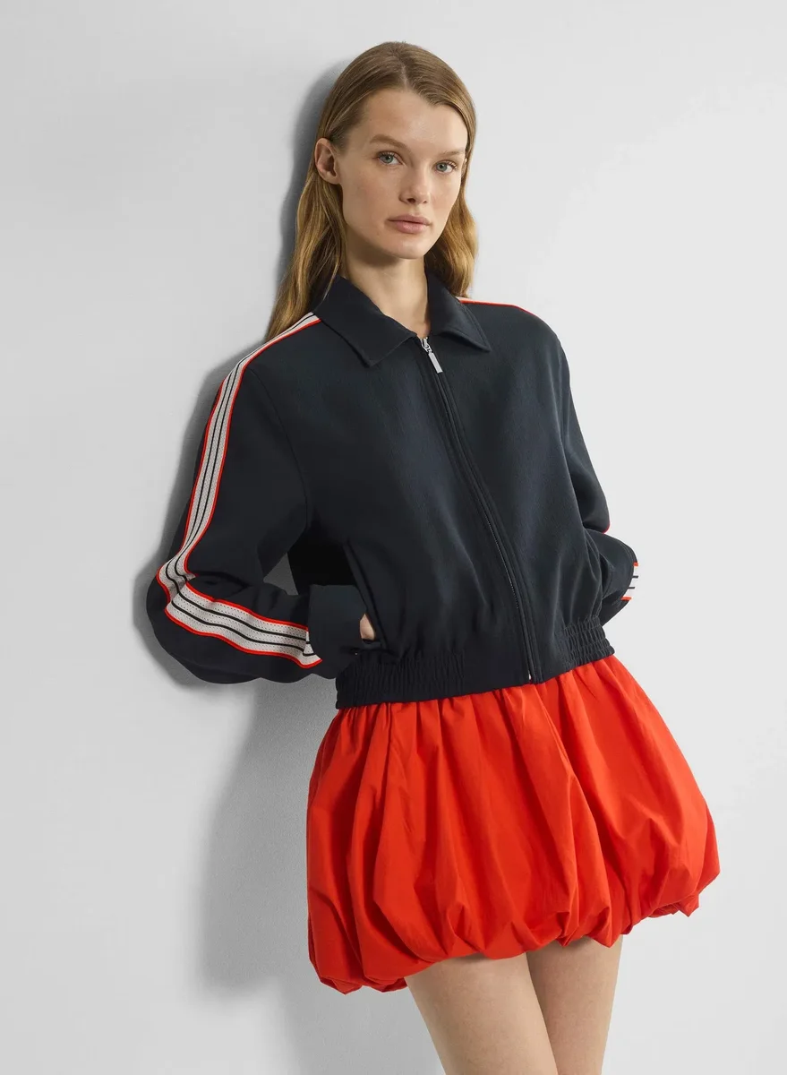 This is a relaxed bomber jacket with front welt pockets and adjustable button-closure cuffs. It’s made with Crepette™ — our one-of-a-kind Japanese crepe fabric beloved for its subtle texture, breezy drape and the fact that it basically never wrinkles.