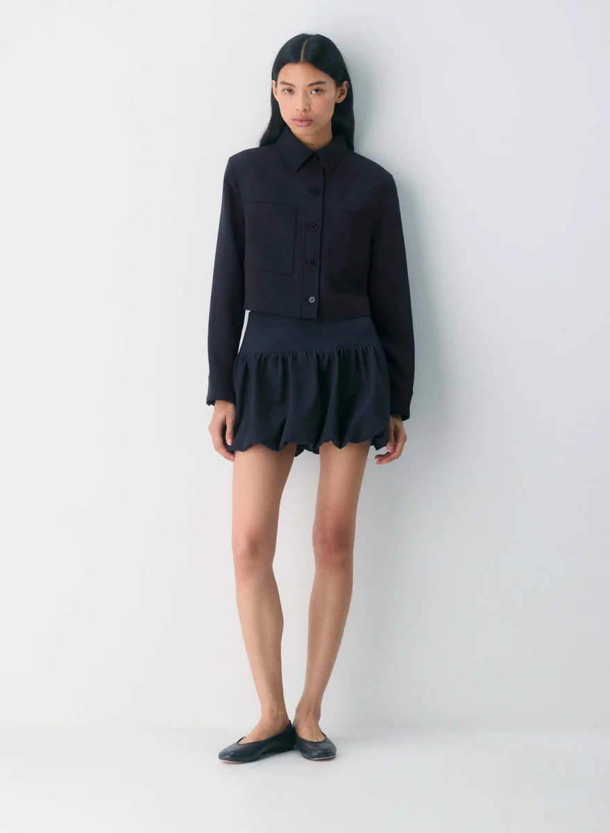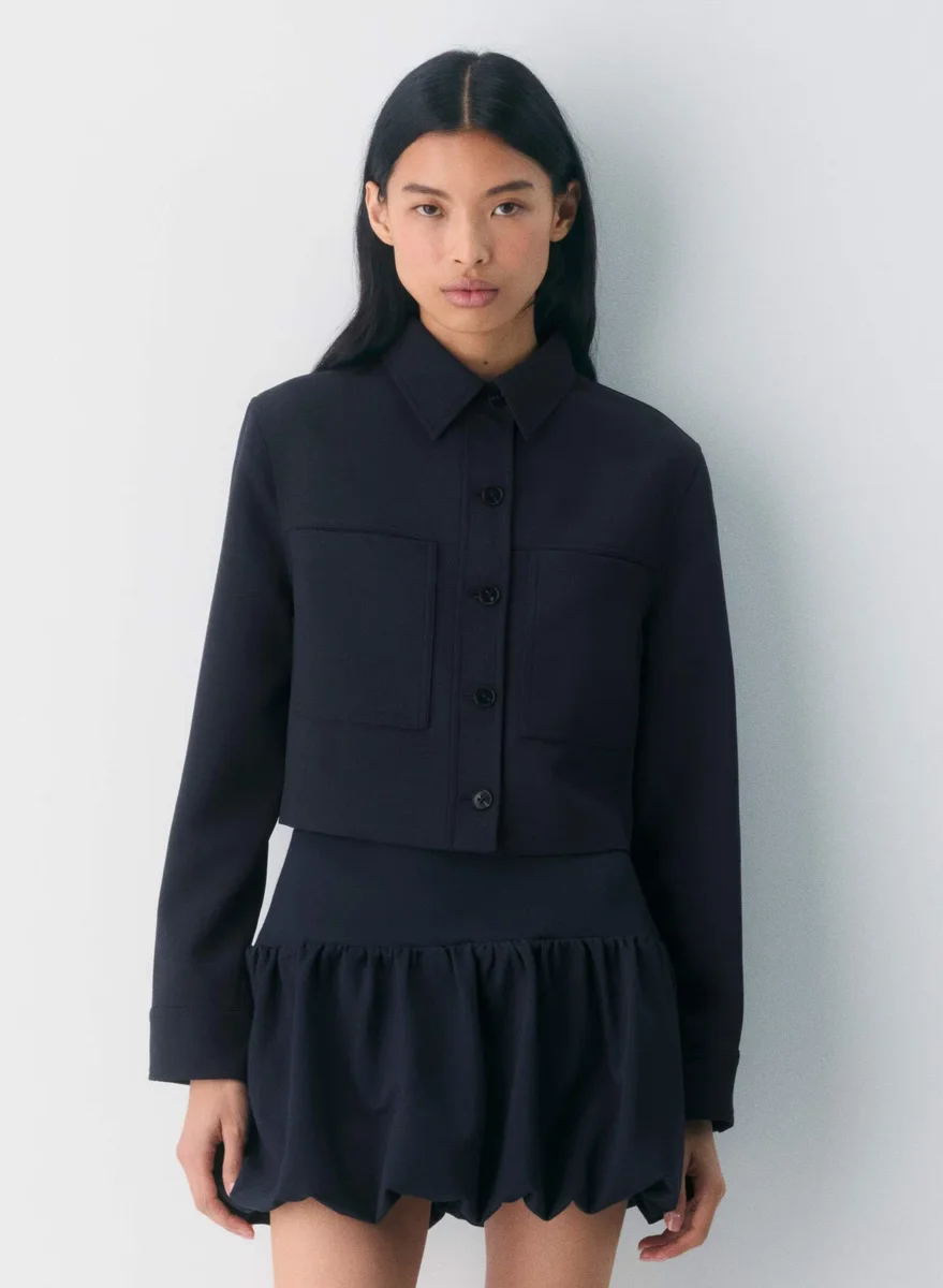 Meet your mom halfwayIt’s still a jacket. Specifically, it’s a perfect little button-up jacket with chest pockets and a hem that hits just right. It’s made with Crepette™ — our one-of-a-kind Japanese crepe fabric beloved for its subtle texture, breezy drape and the fact that it basically never wrinkles.