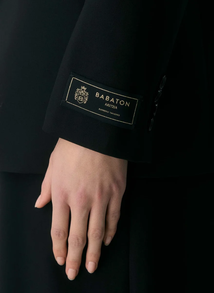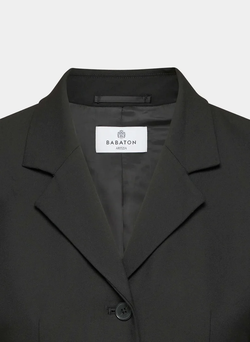 This is a lined single-breasted blazer with a slim fit and shoulder pads. It’s expertly tailored with (Re)ssential Light — soft stretch fabric that’s lightweight and drapey for everyday wear. This fabric is sourced from a premier Portuguese mill and made with 60% recycled polyester and 29% LENZING™ ECOVERO™ Viscose.