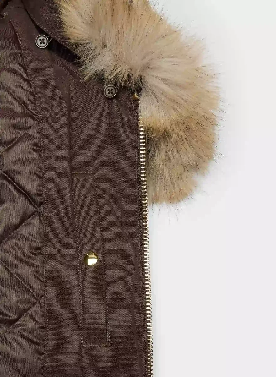 Content: 100% cotton; Lining, Filling & Faux Fur Trim: 100% polyester