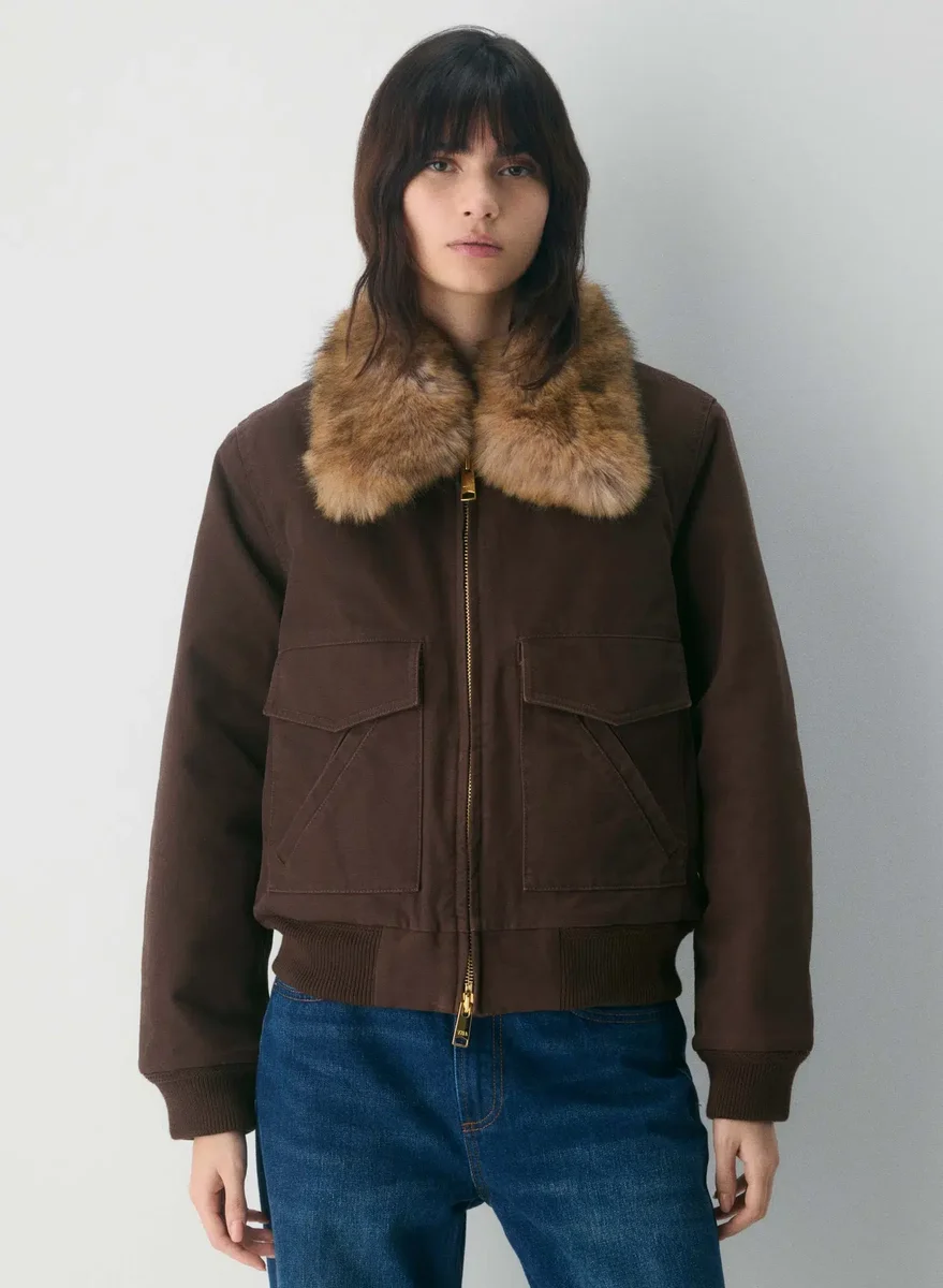 Insulated cotton canvas bomber jacket