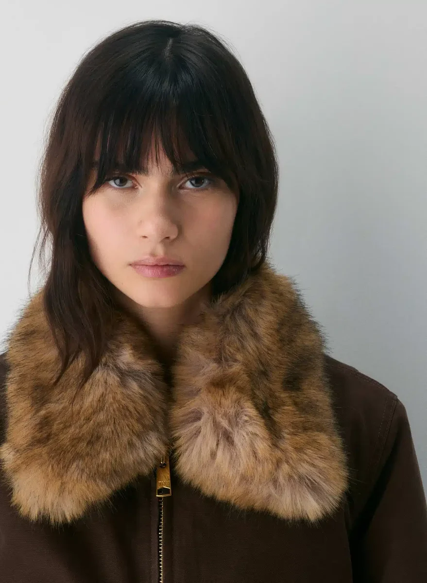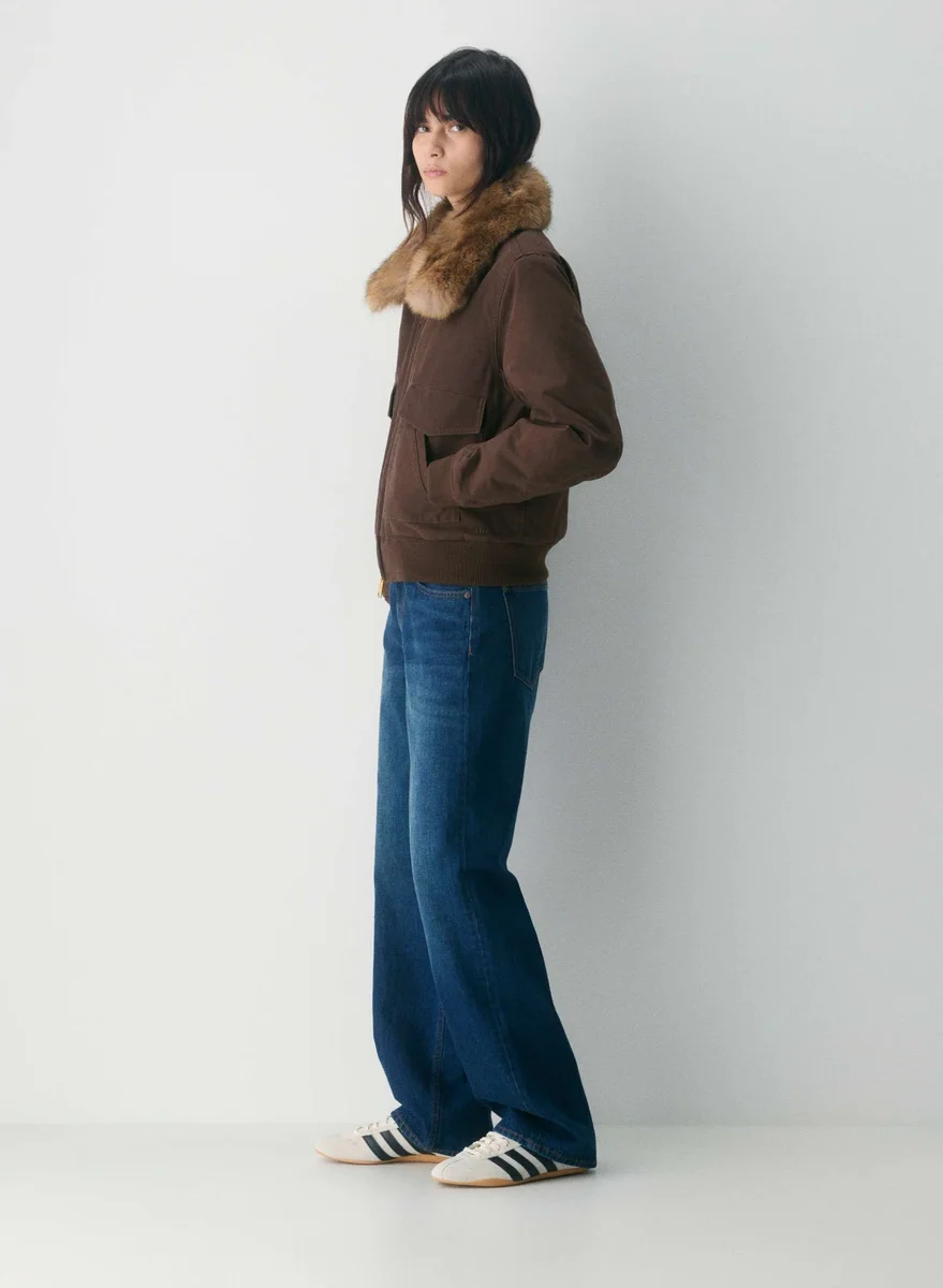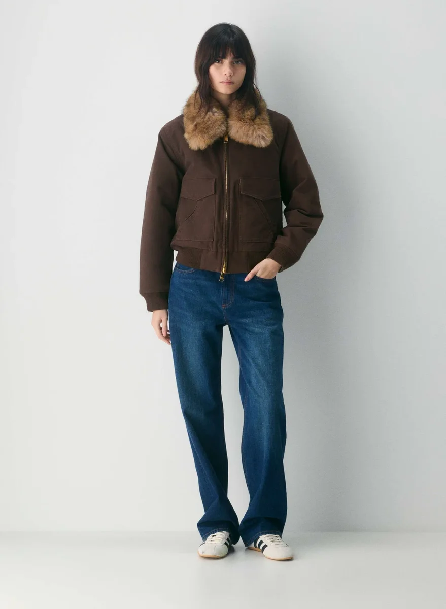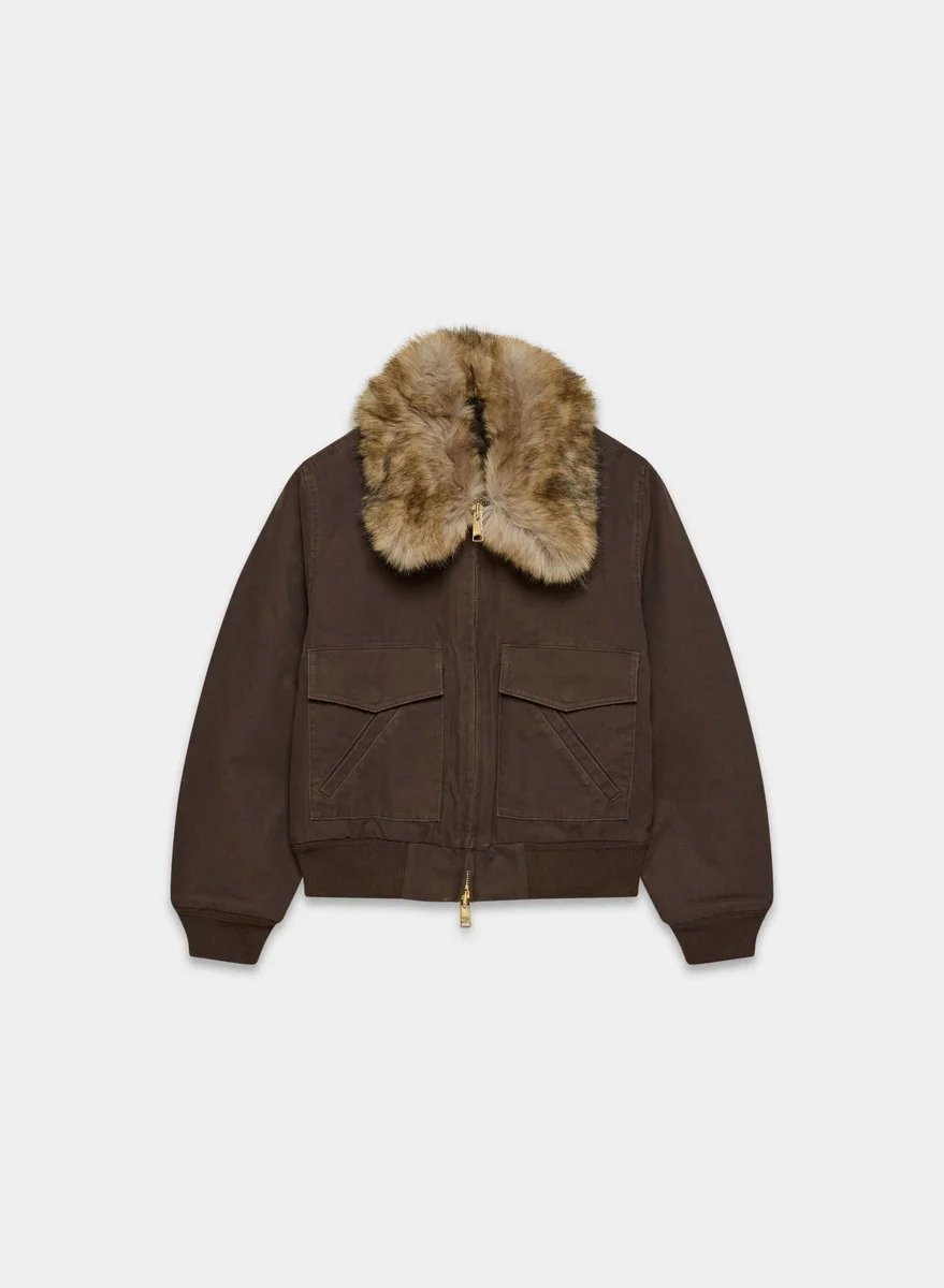 Your chicest co-pilotThis is a quilt-lined bomber jacket with a removable Real Faux Fur collar. It’s filled with PrimaLoft® Black Insulation — the world’s best down alternative, made from 100% recycled materials. This garment is made with Heritage Canvas — 100% cotton canvas with a softly structured feel and timeless look.