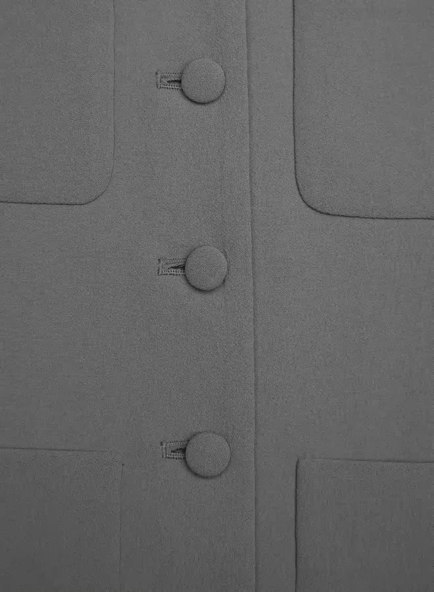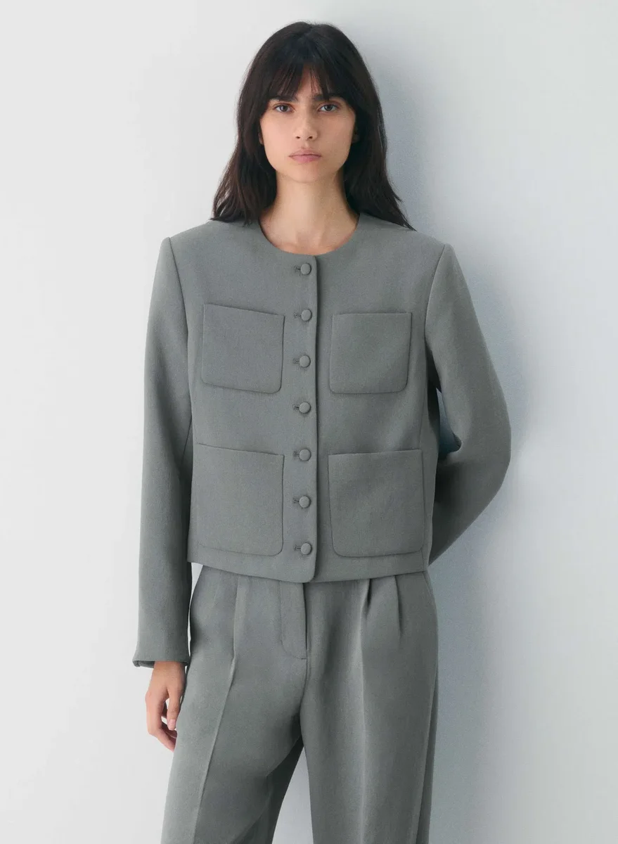 This is a lined single-breasted jacket with patch pockets, shoulder pads and a classic fit. It’s finely tailored with Crepette™ — our one-of-a-kind Japanese crepe fabric beloved for its subtle texture, breezy drape and the fact that it basically never wrinkles.