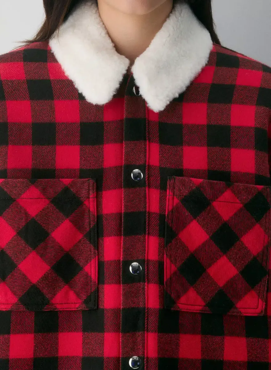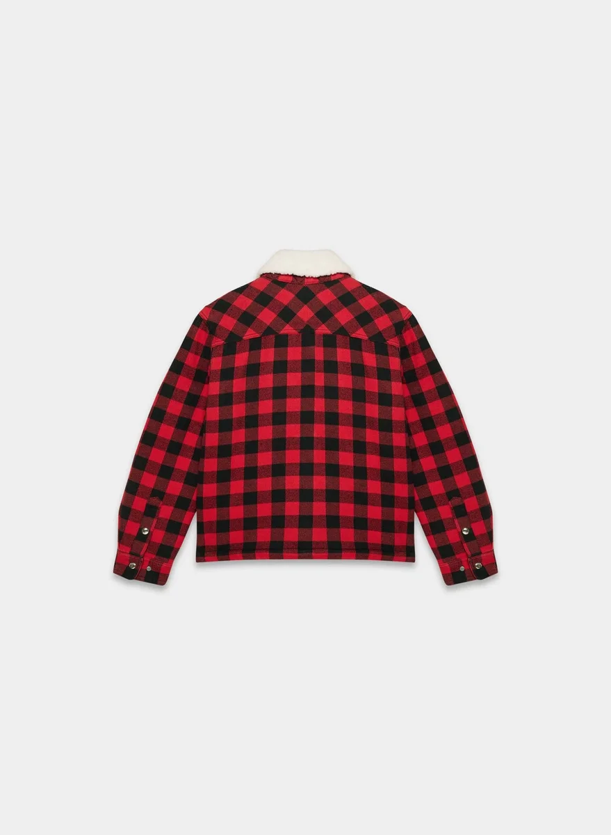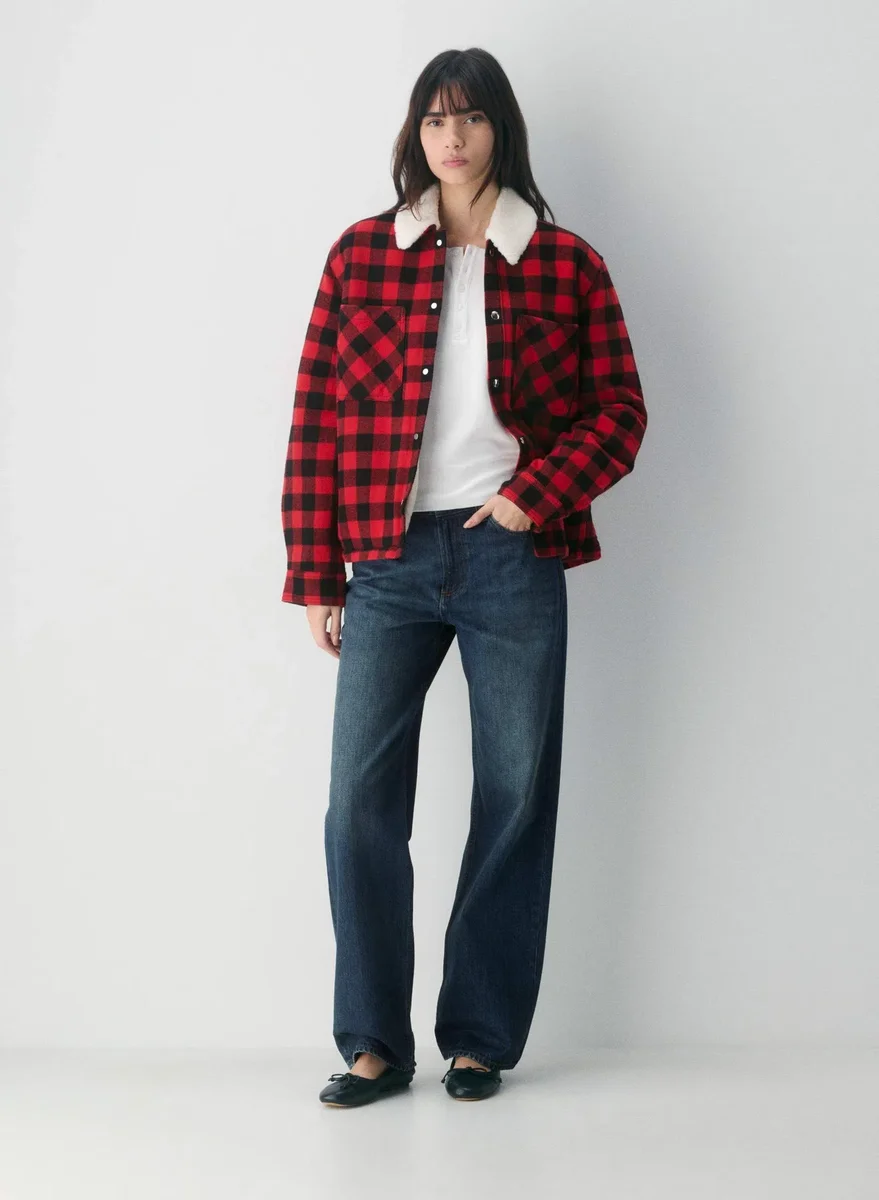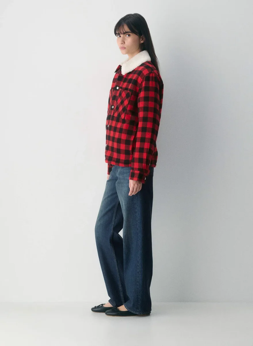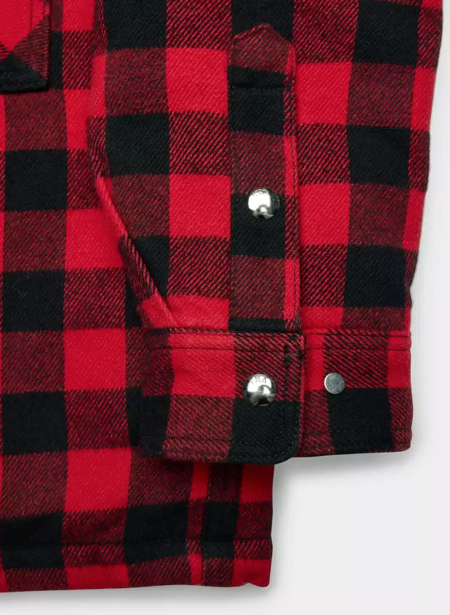 This is a lined button-up jacket with faux shearling lining and patch pockets. It’s made with 100% cotton flannel with a soft, cozy feel and a lived-in look. The sleeves are filled with PrimaLoft® Black Insulation — the world’s best down alternative, made from 100% recycled materials.