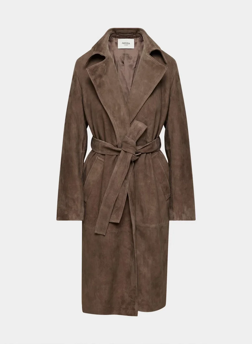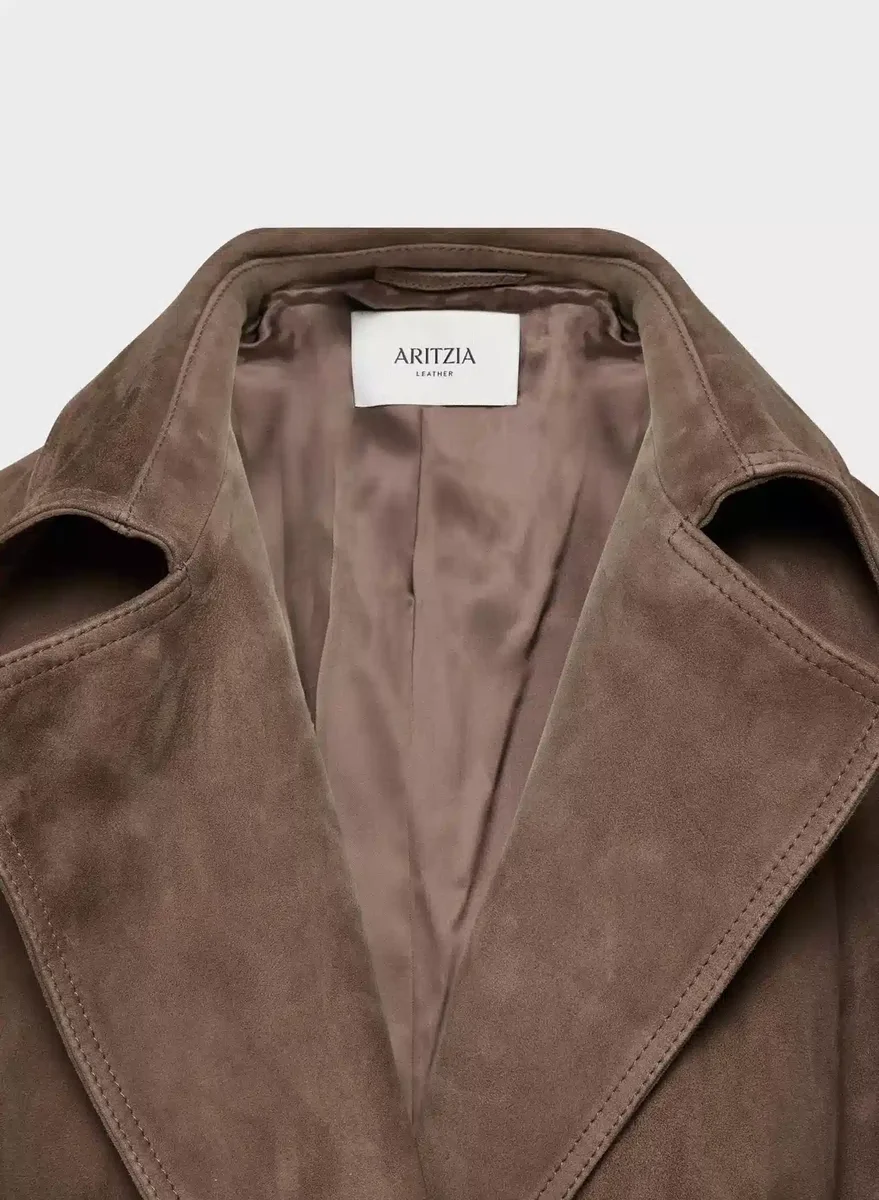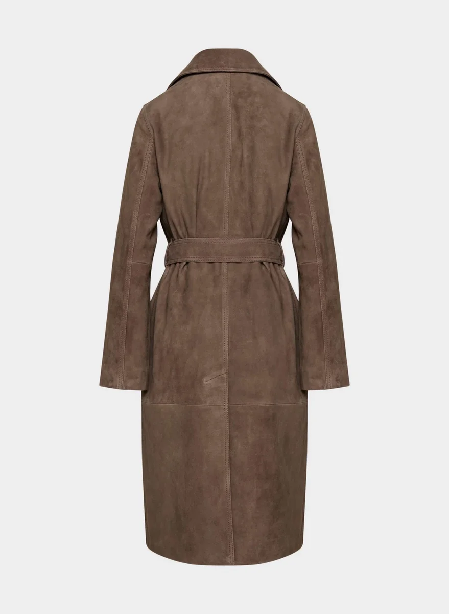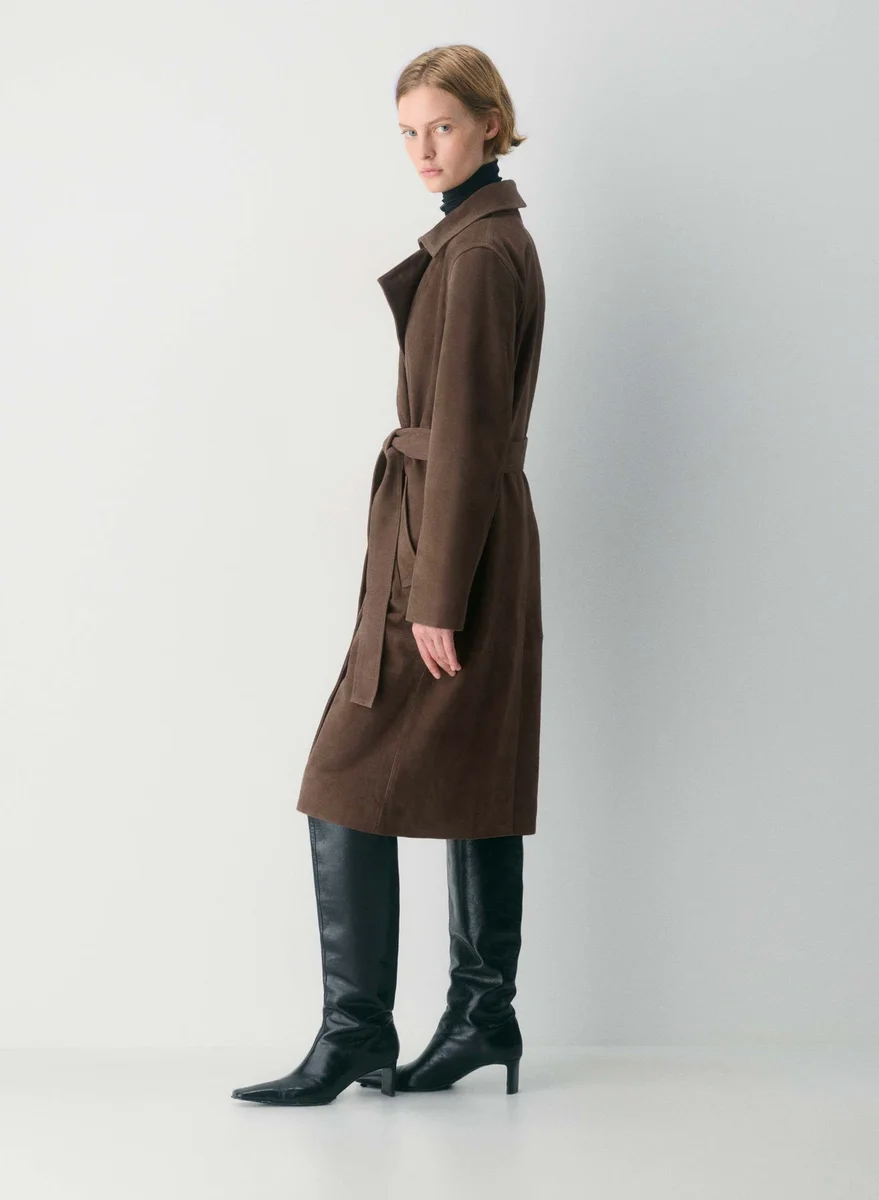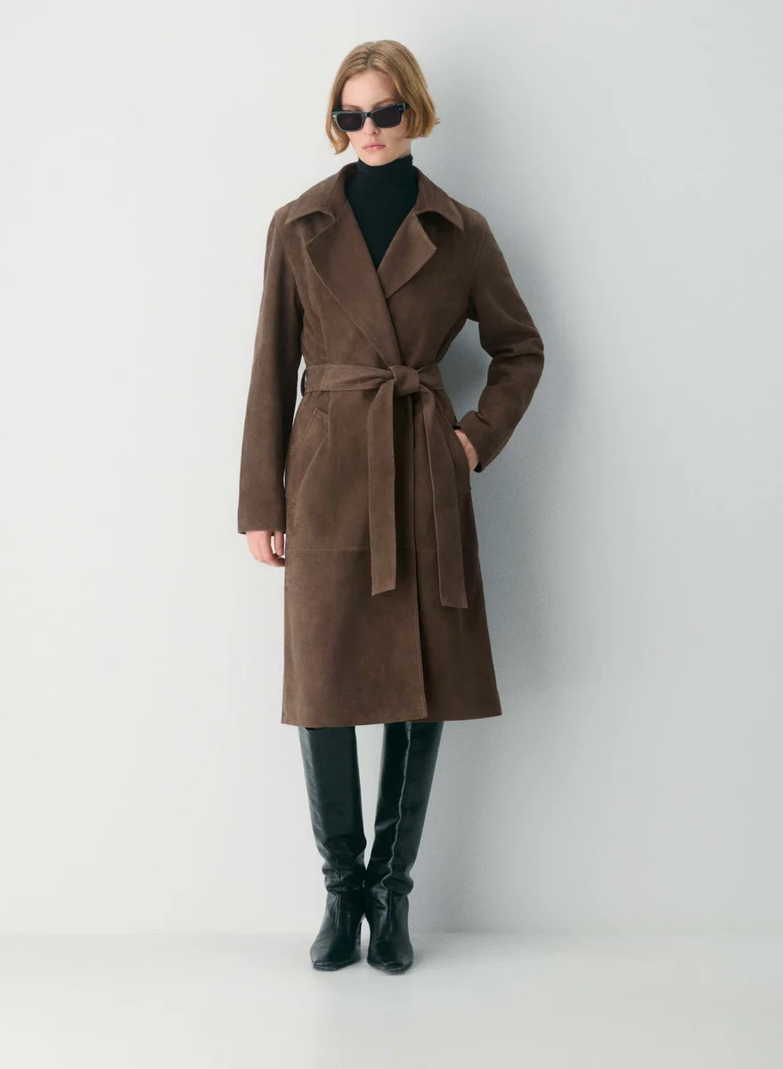 Be mysterious — in 100% SuedeThis is a lined wrap trench coat with welt pockets and a removable belt. It’s expertly crafted from Suede — 100% goat leather with a luxuriously soft, supple texture and a fine, velvet-like feel.